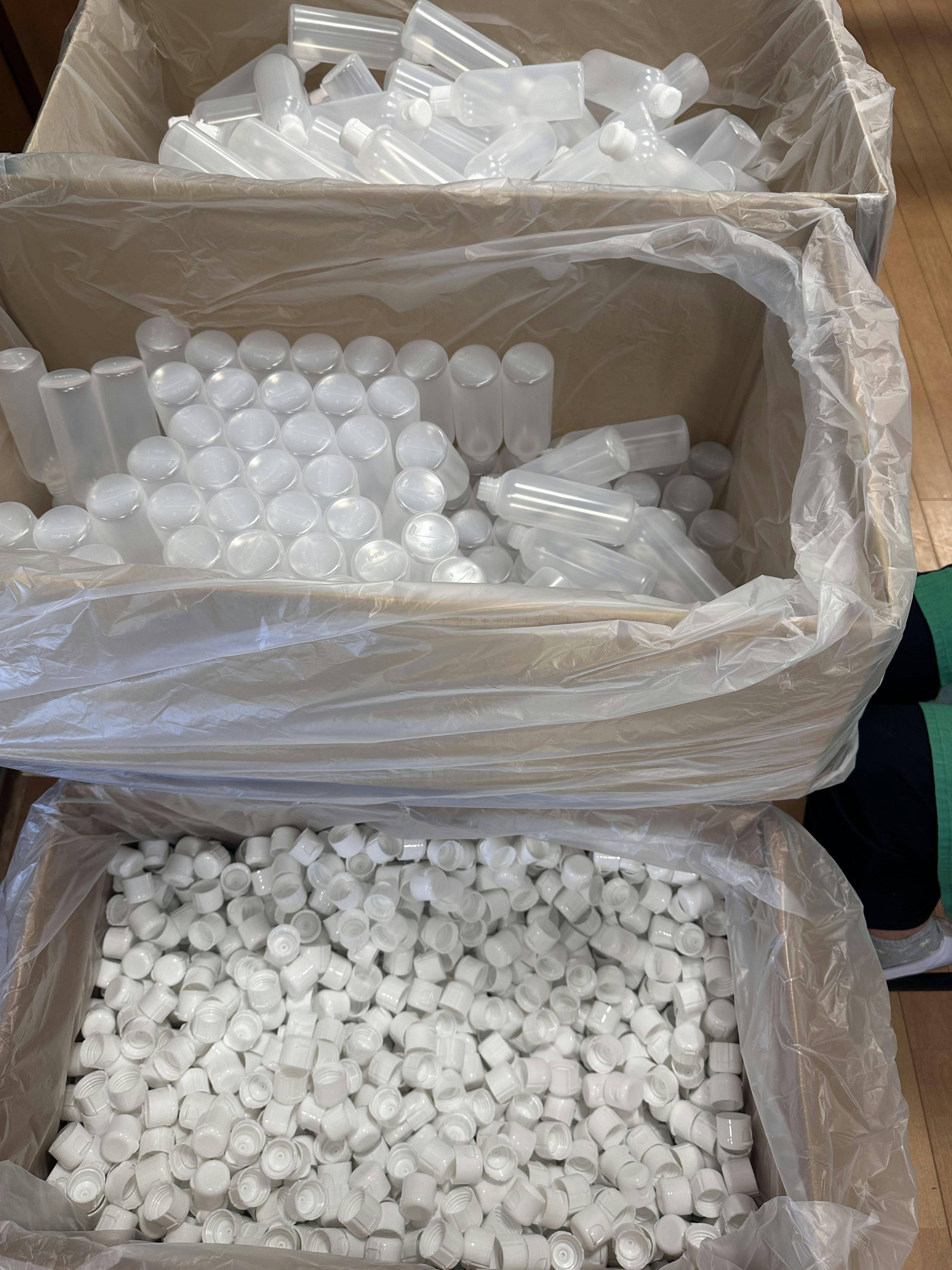 就労支援では主に100円均一で売っているボトルのキャップ締めと封留めをしています。