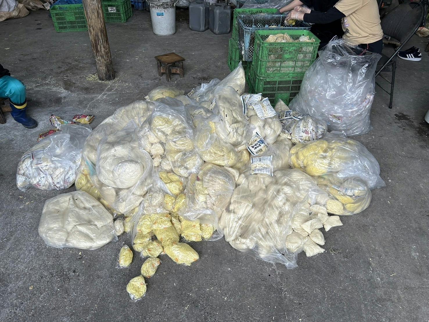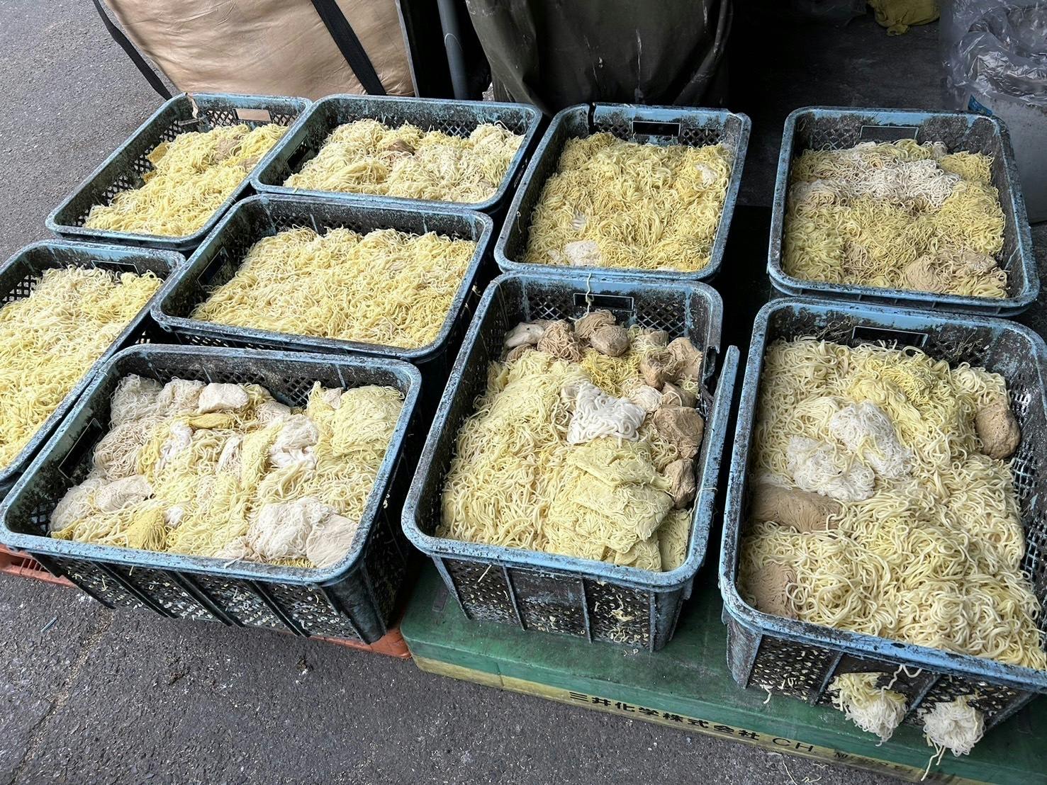 一方で施設外就労では、障がいを持っている方の中でも身のまわりのことがある程度自分でできる選抜メンバーが、豚の肥料となる売れ残りなどのうどんや乾麺の袋を開けてカゴに移す作業を9時半から12時まで行っています。その後施設に帰り、就労支援のお仕事を午後いっぱいやります。