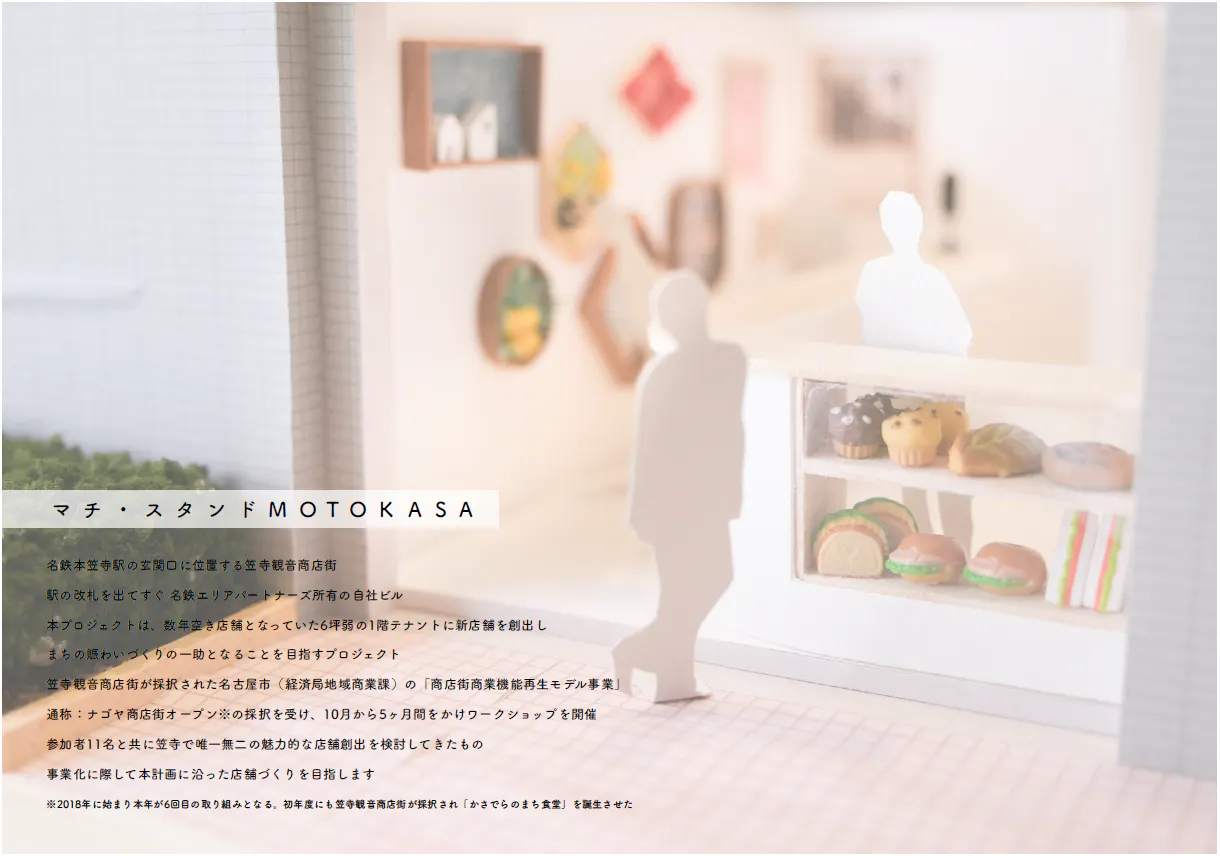 以前は長年地元で愛されたお好み焼き屋さんが入居されていましたが、惜しまれつつ閉店し3年ほどは空き店舗となっていました。そこで笠寺観音商店街や名鉄エリアパートナーズ、の方たちがこのスペースを使って新たに賑わいを創出できるようプロジェクトを立ち上げました。
