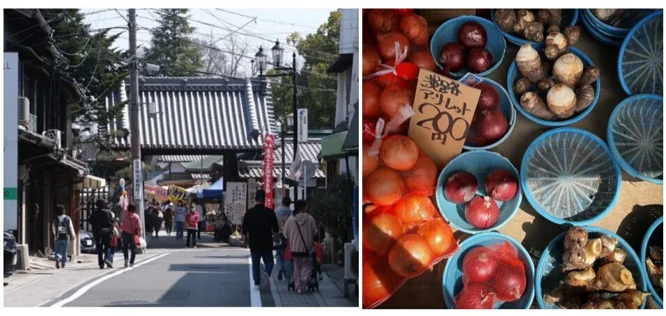 (笠寺観音での6の市と新鮮野菜)
