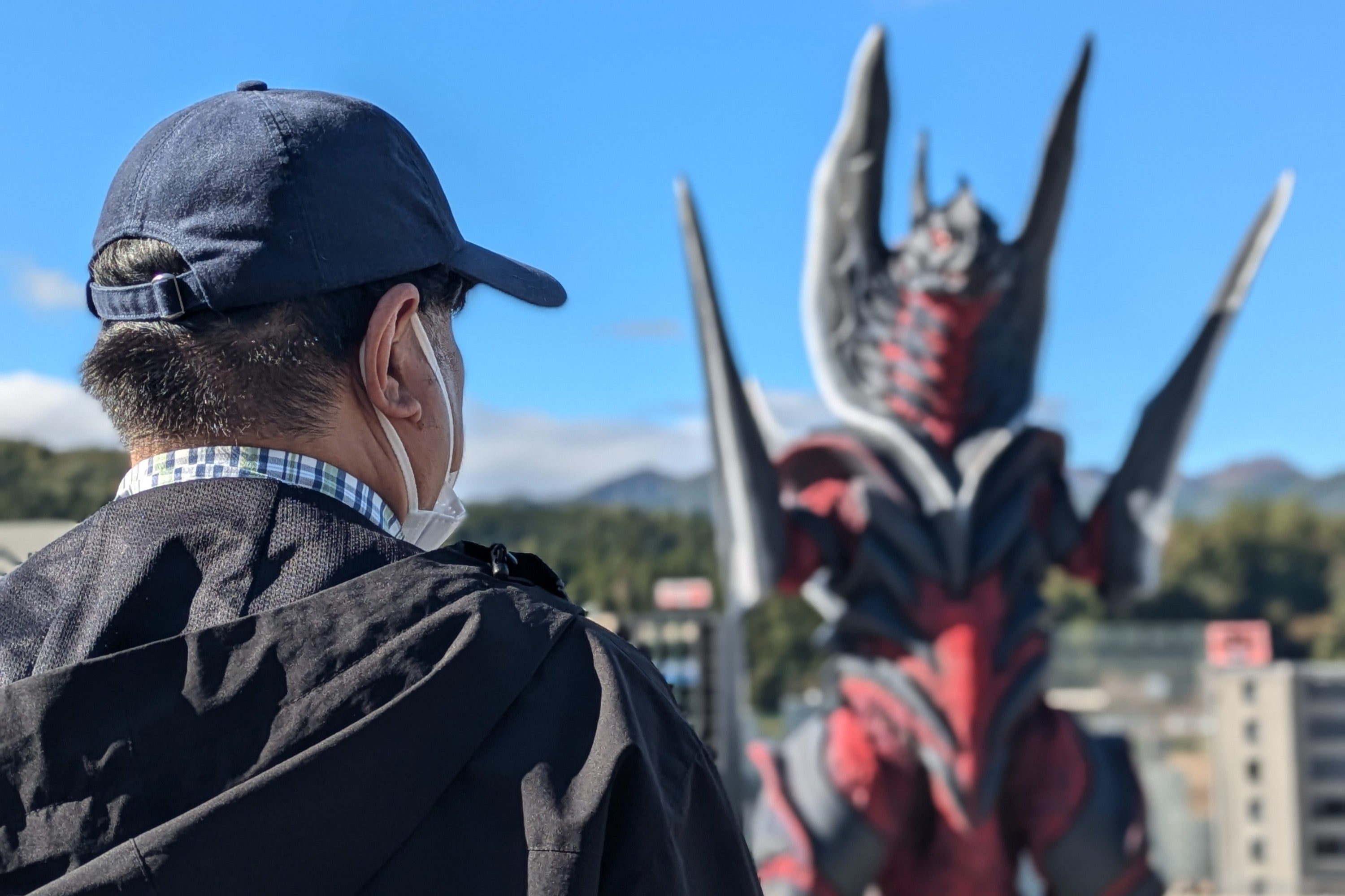 11月の特撮シークエンスの撮影には、「平成ガメラシリーズ」『ゴジラ・モスラ・キングギドラ 大怪獣総攻撃』(特撮美術監督)『ウルトラマンサーガ』「大魔神カノン」(特撮監督)の【三池敏夫】氏が特別に特撮美術監督として参加してくれました。特撮を知り尽くしたベテランの力を借り満足いくシーンが撮影出来ました。