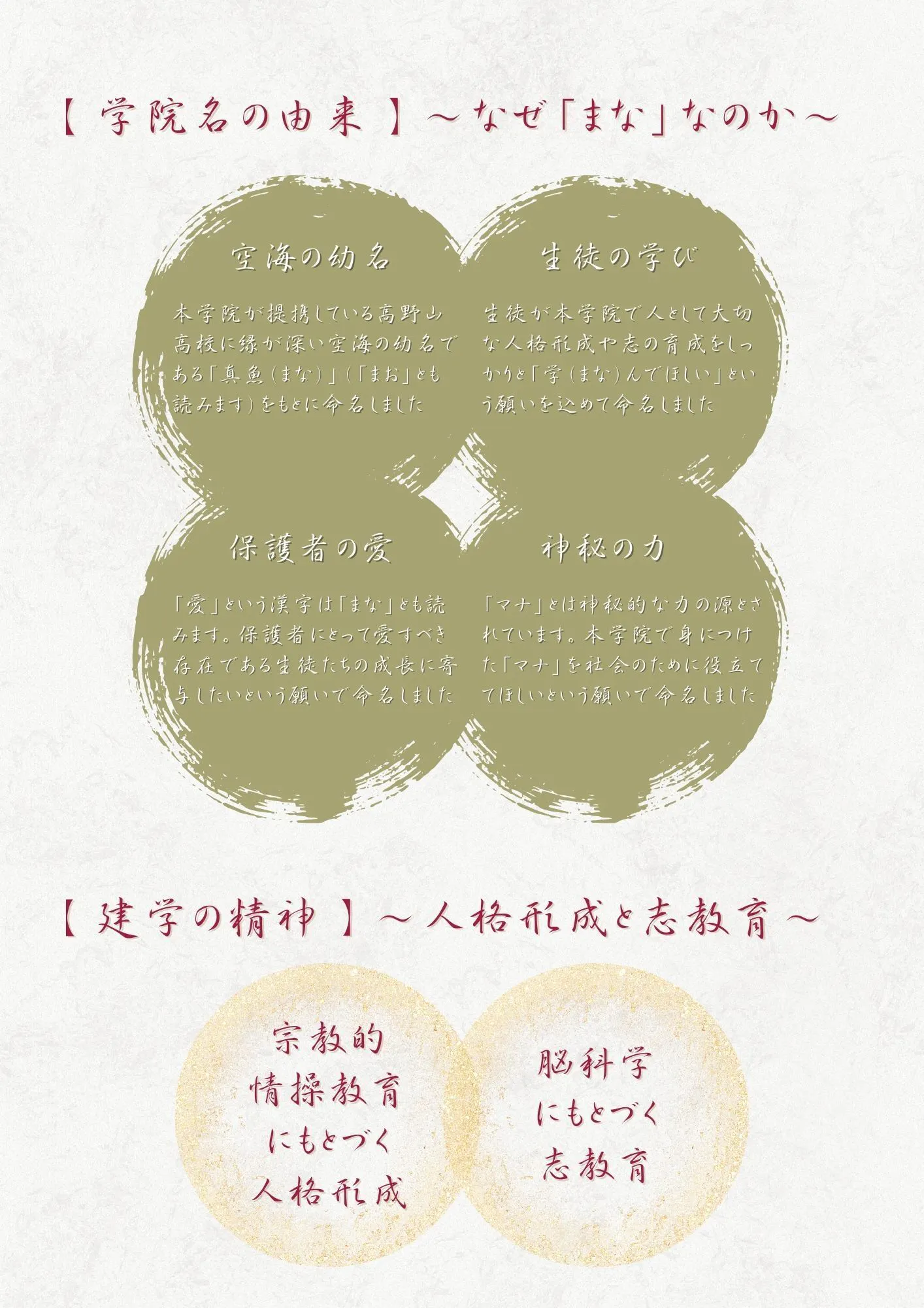 「神秘的な力の源を「マナ」と呼ぶことから、子どもたちが本学院で身につけた神秘的な力を社会のために役立ててほしい」