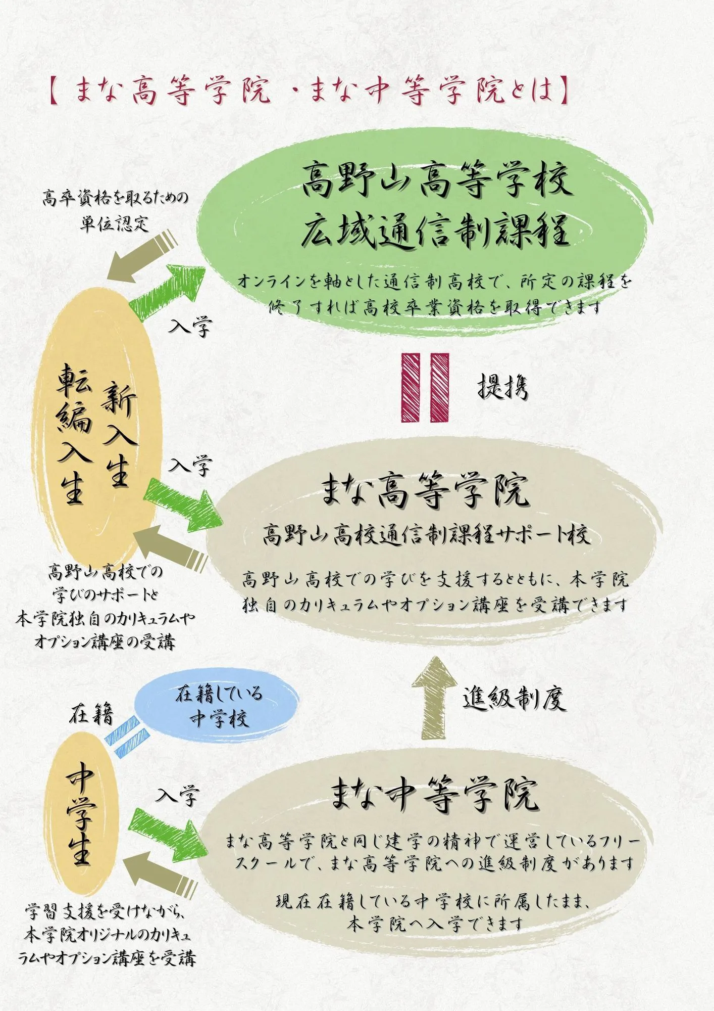 「まな高等学院」は高野山高校広域通信制課程と提携しているサポート校であり、まな高等学院に入学すると同時に高野山高校通信制課程にも入学することとなります。そして、高野山高校通信制課程において所定の課程を修了すれば高校卒業資格が取得できます。