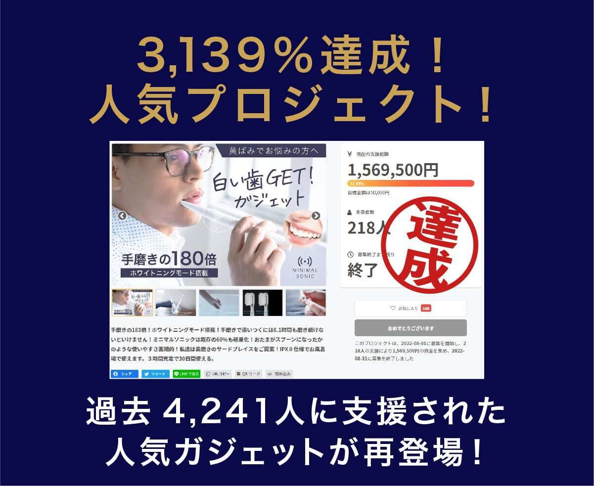 電動歯ブラシの普及率は先進国の42%と比べて、日本は22%と言われています。まだまだ普及が必要だと私達は考えミニマルソニックが普及のきっかけになればと思っています。