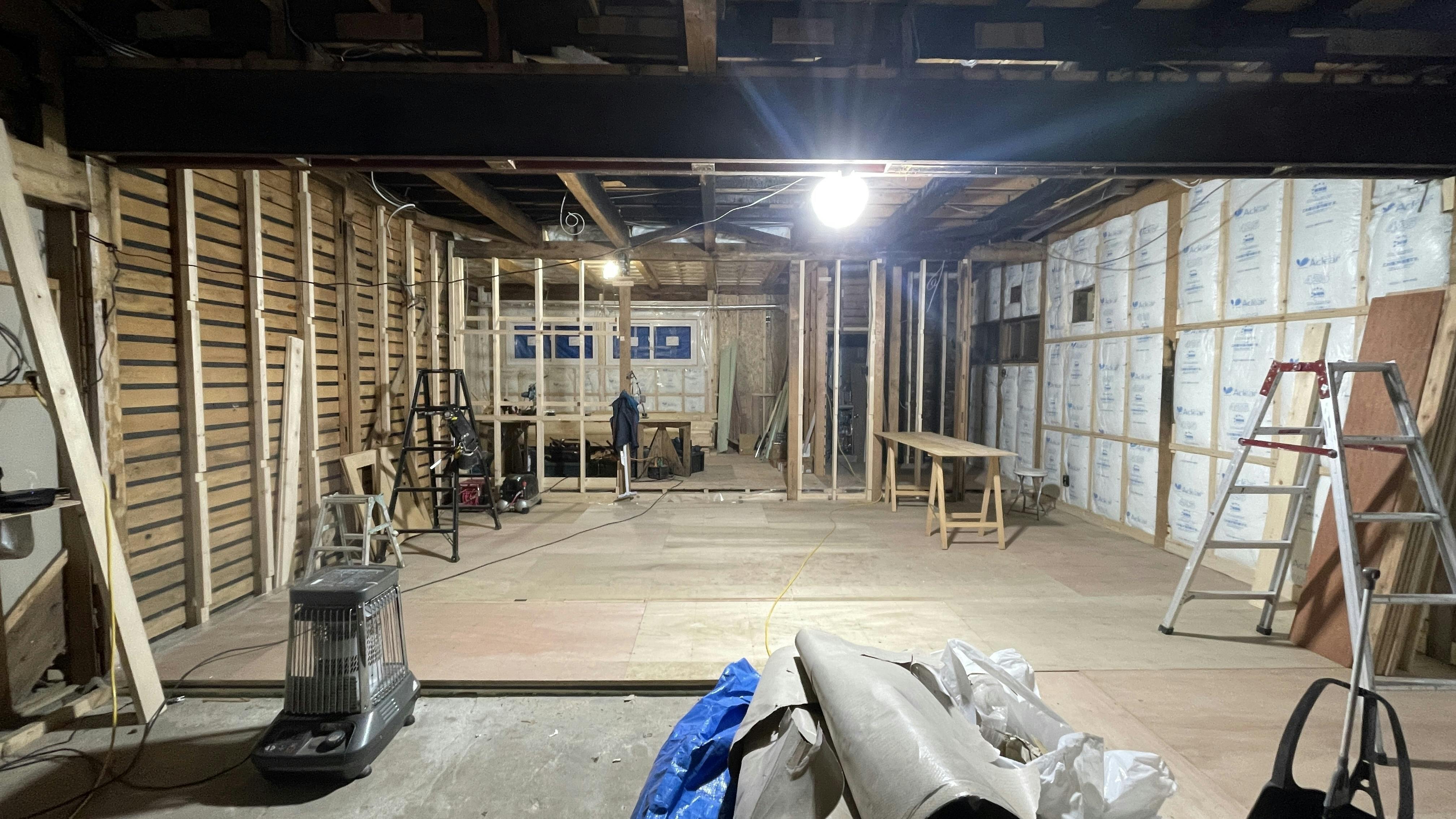 2025/04/06 22:59皆様こんにちは、積分堂のタサキアツヤです。気がつけば新年度、春も目前となってまいりました。5月中のオープンを目指して毎日ヘトヘトになりながら頑張っています!工事の進捗を報告します!外壁の下地工事が終わり、積分堂が壁で囲われました!これで寒風にさらされずに作業ができるように!(本気で嬉しい)工房部分の床の捨て張りができると(ちょっとミスってこの後もう一層合板を張ります)、なんとなくそれっぽくなってきたような気がしないでもない。店舗部分の床は、当初は既存の床の上に更に根太を組んで増張りする予定でしたが、きちんと測ってみると意外にも水平が取れていたため、断熱材を入れて、そのまま生かすことにしました。そして、思ったよりもコンクリートの土間が広かったので、入口部分はそのまま土間仕上げにすることにしました。周りの方のお手伝いもあり、壁の下地はほぼほぼ完了しました。このあとは天井の下地やボードの貼り付け作業ののち、漆喰塗装などの仕上げ作業に取り掛かります!また、工事と並行して、家具の引き取りや古材の回収も行っております。先日はとある大変歴史のある蔵の木樽の回収に行きました。身長を遥かに超える特大の木樽。そのまま運び出すのは難しいので、解体して引き取ります。軽バンで向かったのですが、色々重なり、そのまま一旦蔵で預かってていただけることに。そして帰りがけ、大雪山の峠越えの道中に事件は起こりました。真っ暗な山道にて車が突如ストップ。レッカーを養成し、別で友人にも迎えにきてもらい、無事帰宅はできたのですが、車は廃車となってしまいました。(原因は私の整備不良です。とても勉強になりました。)アクシデントはありながらも、なんとか毎日頑張っています。しかしながら、工事の見積もりが甘く、オープン時期は5月になります。GW中にはプレオープンだけでもできるよう進行しています。クラファンのリターンのグッズや商品券などの発送も遅れてしまって大変お待たせして申し訳ございません。4月中旬にはチケットやTシャツなどは発送予定です。古材オリジナルグッズも5月中には送付致します。なるべく早く積分堂をオープンし、皆様に足を運んでいただけるよう残り一月ほど走り切りますので、引き続きよろしくお願いいたします。積分堂 タサキアツヤ もっと見る【メルマガ配信開始しました】