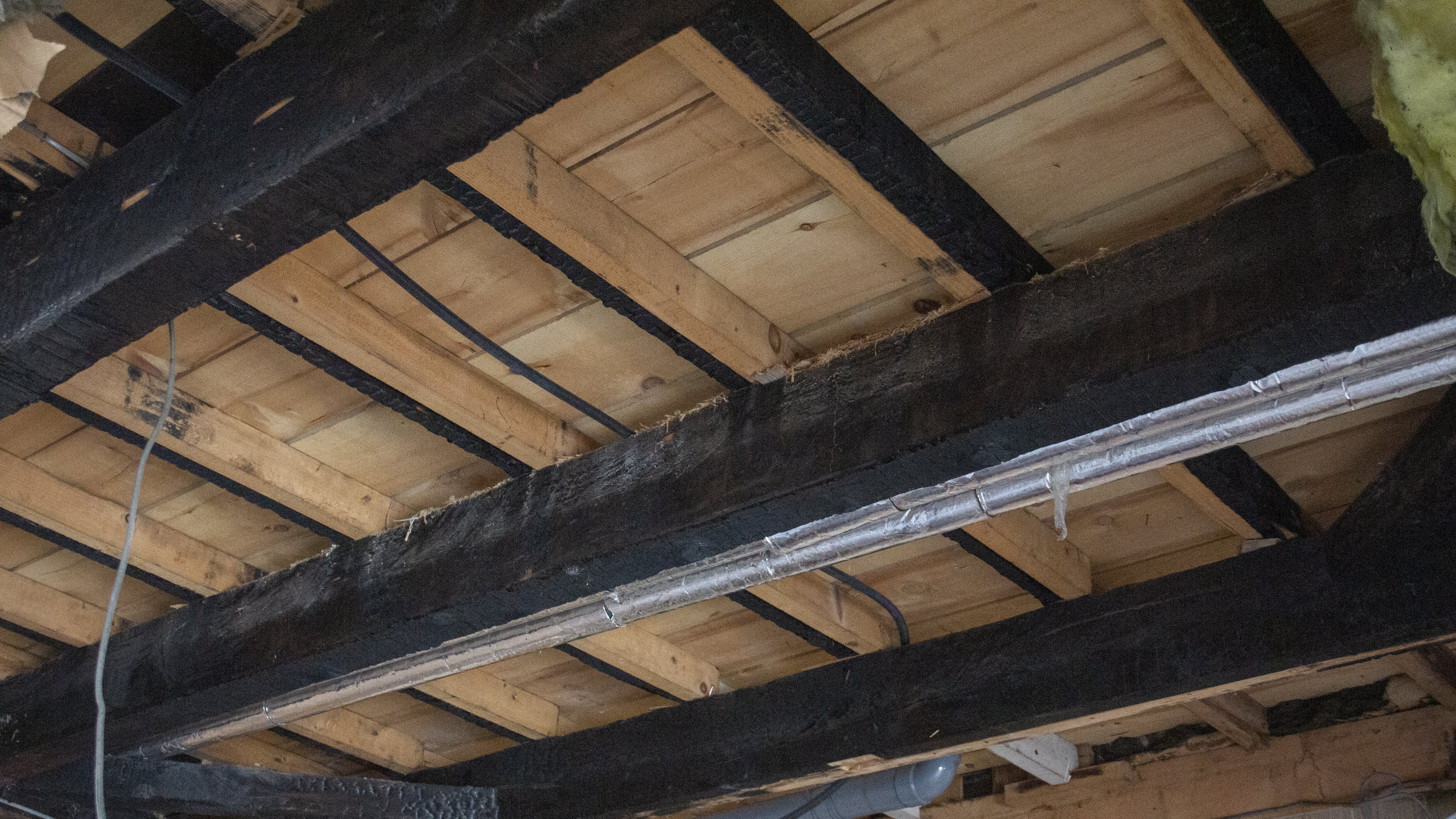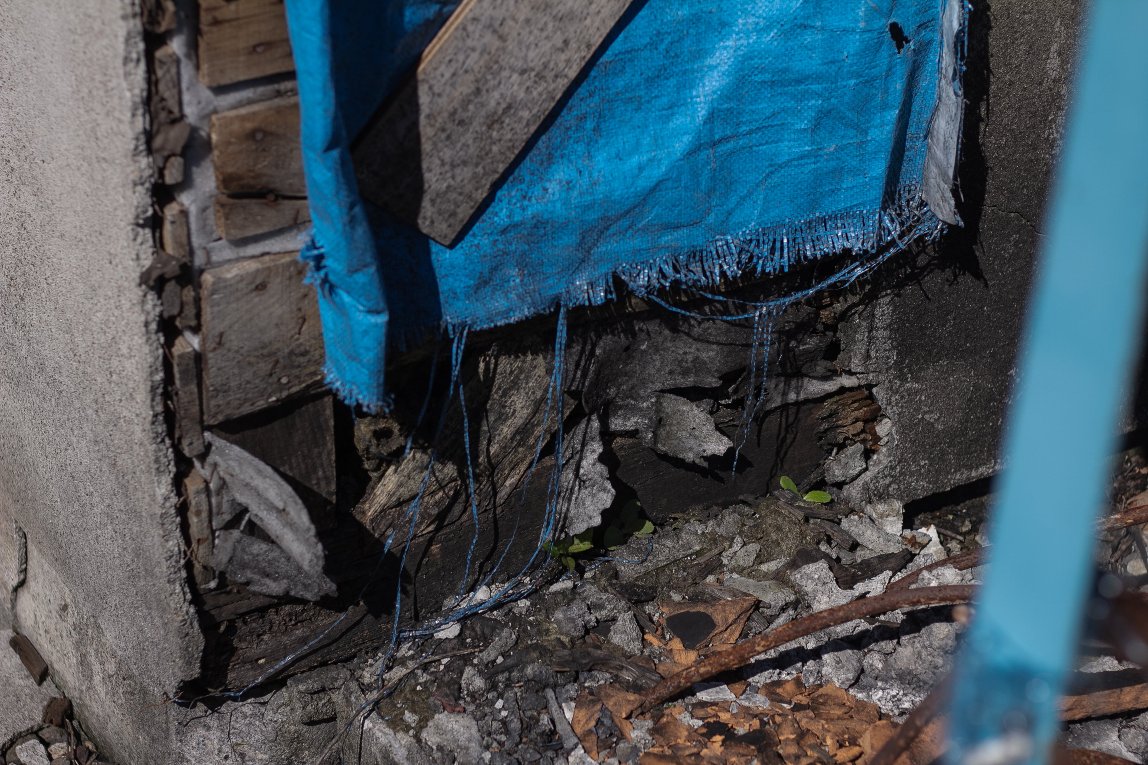 空き家になっている間(2年前の冬)に、建物裏の煙突が剥がれ落ち、その影響で外壁が剥がれ、屋根も一部が倒壊し、雨漏りもしています。