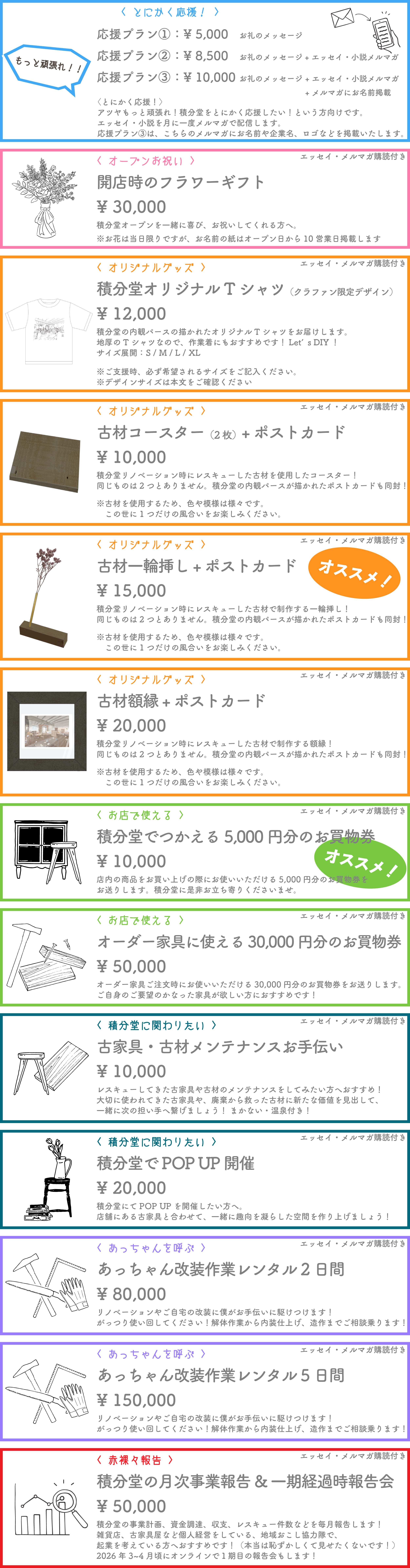 ※詳細は各リターンのページからご確認くださいませ。