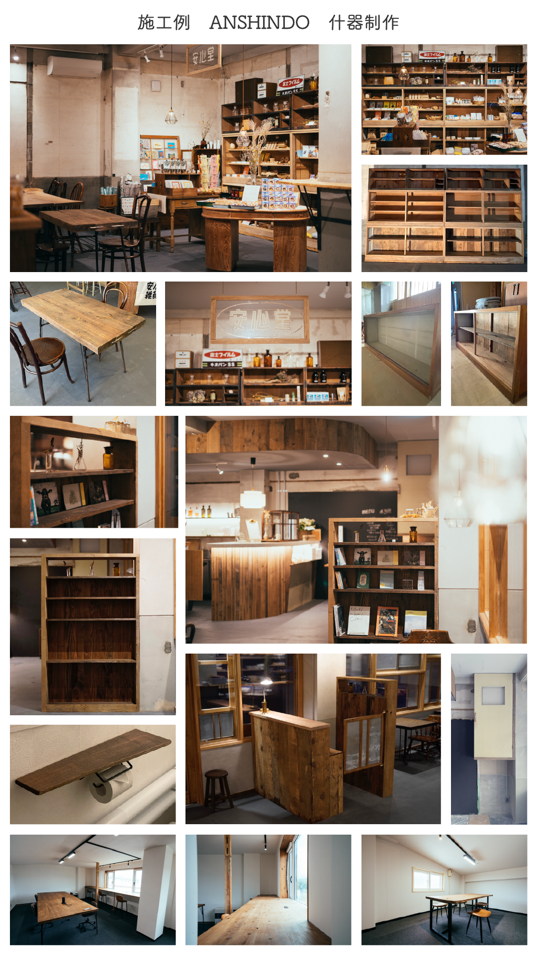 中村さんが一通り作業を終えて現場を離れた後も、ANSHINDO一階の什器の制作をEFCから受託し、自分なりにデザインも考え古材を使って制作をしました。