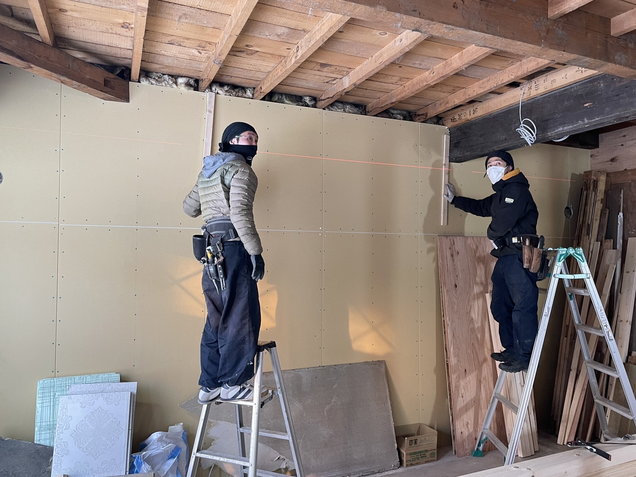 2025/04/06 22:59皆様こんにちは、積分堂のタサキアツヤです。気がつけば新年度、春も目前となってまいりました。5月中のオープンを目指して毎日ヘトヘトになりながら頑張っています!工事の進捗を報告します!外壁の下地工事が終わり、積分堂が壁で囲われました!これで寒風にさらされずに作業ができるように!(本気で嬉しい)工房部分の床の捨て張りができると(ちょっとミスってこの後もう一層合板を張ります)、なんとなくそれっぽくなってきたような気がしないでもない。店舗部分の床は、当初は既存の床の上に更に根太を組んで増張りする予定でしたが、きちんと測ってみると意外にも水平が取れていたため、断熱材を入れて、そのまま生かすことにしました。そして、思ったよりもコンクリートの土間が広かったので、入口部分はそのまま土間仕上げにすることにしました。周りの方のお手伝いもあり、壁の下地はほぼほぼ完了しました。このあとは天井の下地やボードの貼り付け作業ののち、漆喰塗装などの仕上げ作業に取り掛かります!また、工事と並行して、家具の引き取りや古材の回収も行っております。先日はとある大変歴史のある蔵の木樽の回収に行きました。身長を遥かに超える特大の木樽。そのまま運び出すのは難しいので、解体して引き取ります。軽バンで向かったのですが、色々重なり、そのまま一旦蔵で預かってていただけることに。そして帰りがけ、大雪山の峠越えの道中に事件は起こりました。真っ暗な山道にて車が突如ストップ。レッカーを養成し、別で友人にも迎えにきてもらい、無事帰宅はできたのですが、車は廃車となってしまいました。(原因は私の整備不良です。とても勉強になりました。)アクシデントはありながらも、なんとか毎日頑張っています。しかしながら、工事の見積もりが甘く、オープン時期は5月になります。GW中にはプレオープンだけでもできるよう進行しています。クラファンのリターンのグッズや商品券などの発送も遅れてしまって大変お待たせして申し訳ございません。4月中旬にはチケットやTシャツなどは発送予定です。古材オリジナルグッズも5月中には送付致します。なるべく早く積分堂をオープンし、皆様に足を運んでいただけるよう残り一月ほど走り切りますので、引き続きよろしくお願いいたします。積分堂 タサキアツヤ もっと見る【メルマガ配信開始しました】
