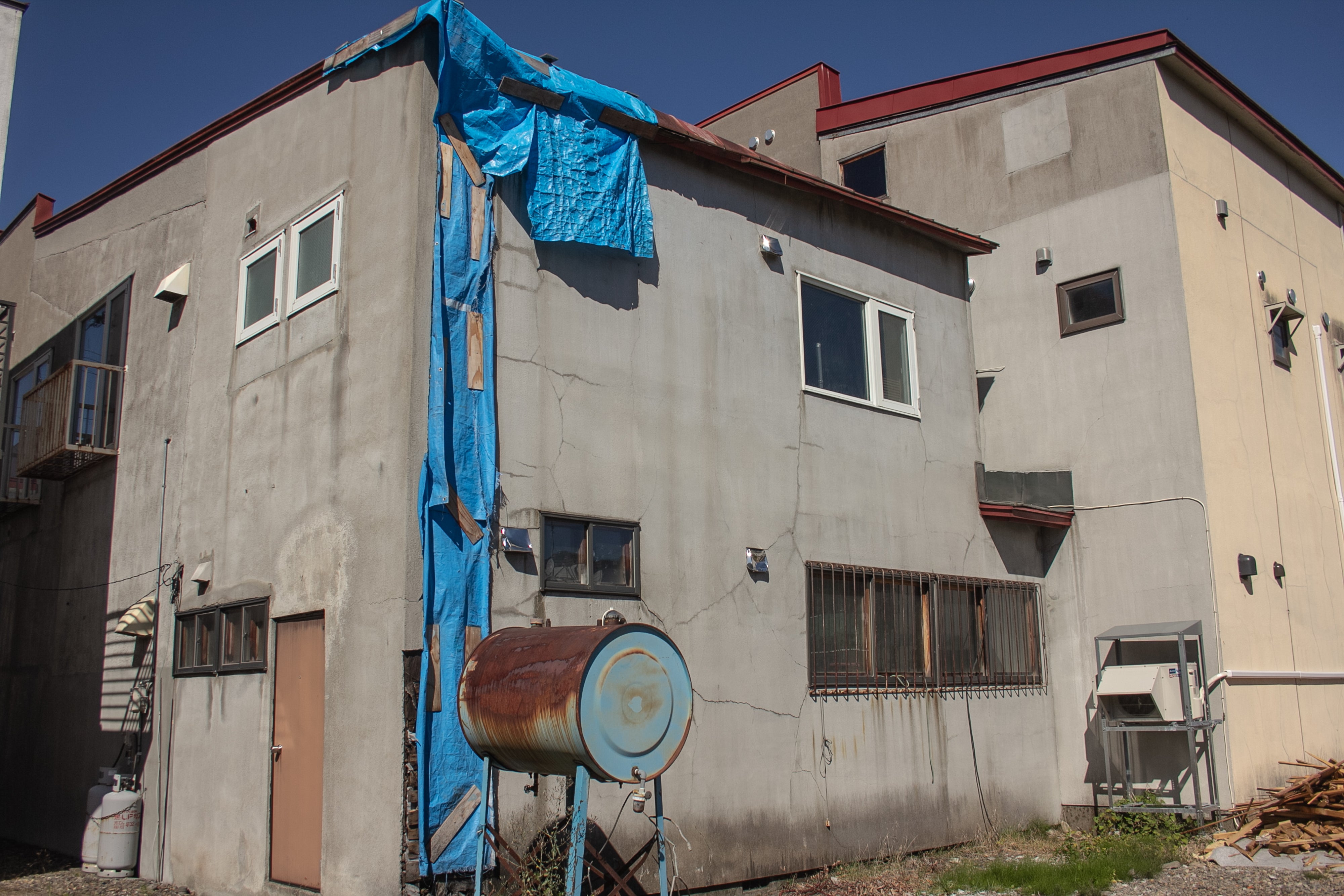 空き家になっている間(2年前の冬)に、建物裏の煙突が剥がれ落ち、その影響で外壁が剥がれ、屋根も一部が倒壊し、雨漏りもしています。