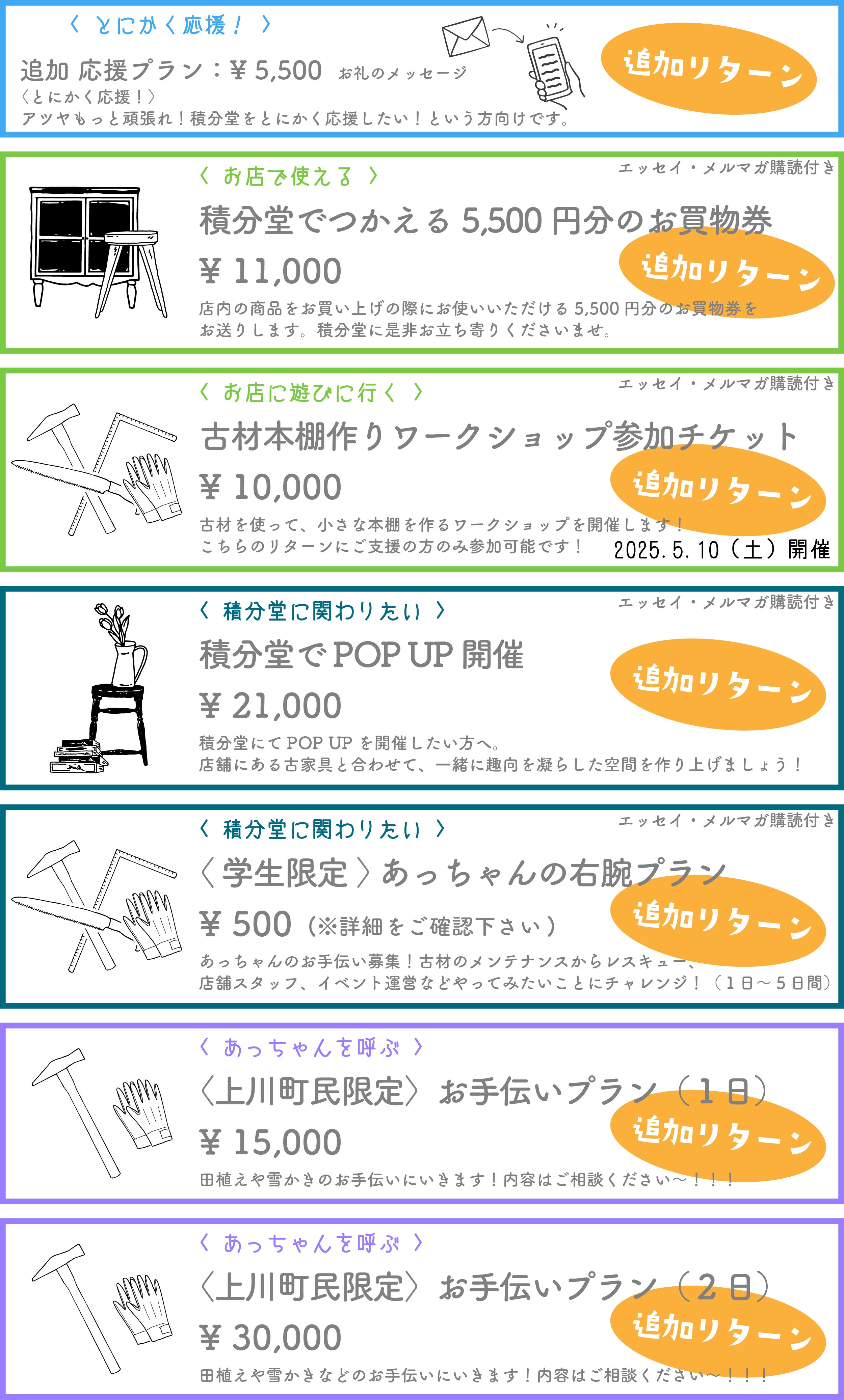 ※詳細は各リターンのページからご確認くださいませ。