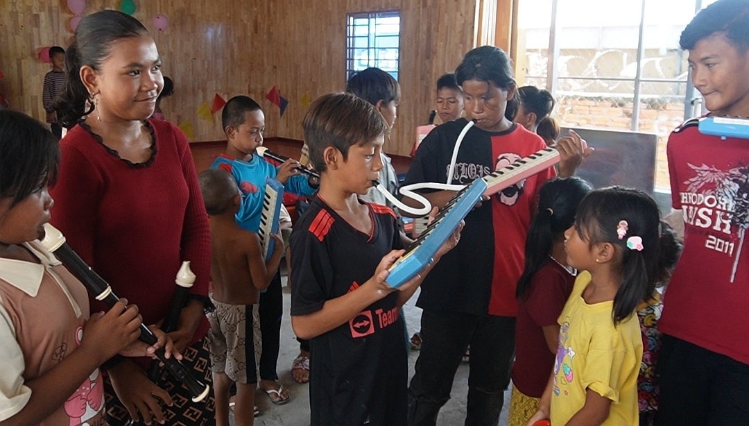 ピアニカを演奏するカンボジアの子供たち