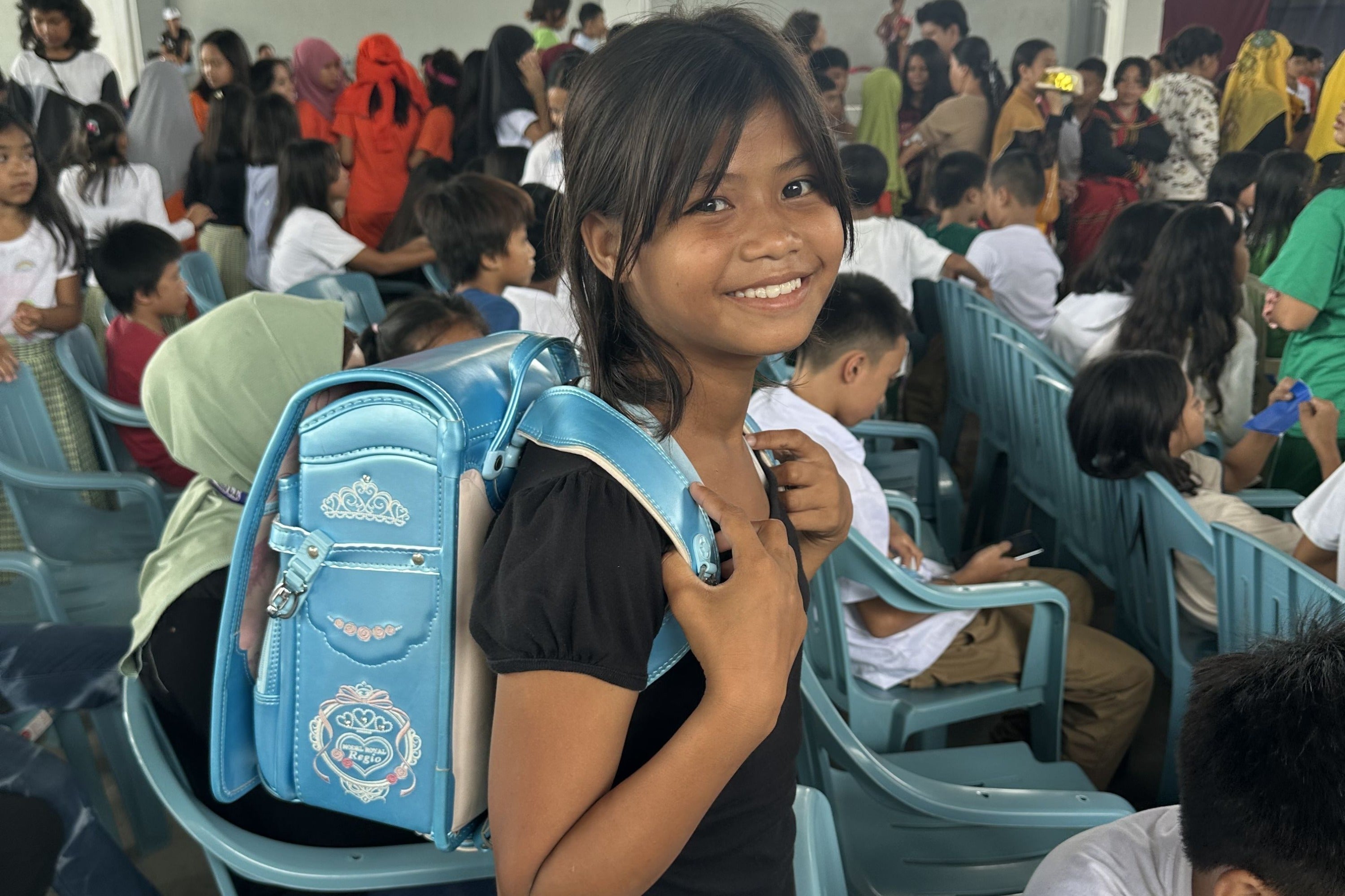 <参考:2024年9月に、フィリピン南部の農村地帯の小学校で行われたランドセルの贈呈式。>