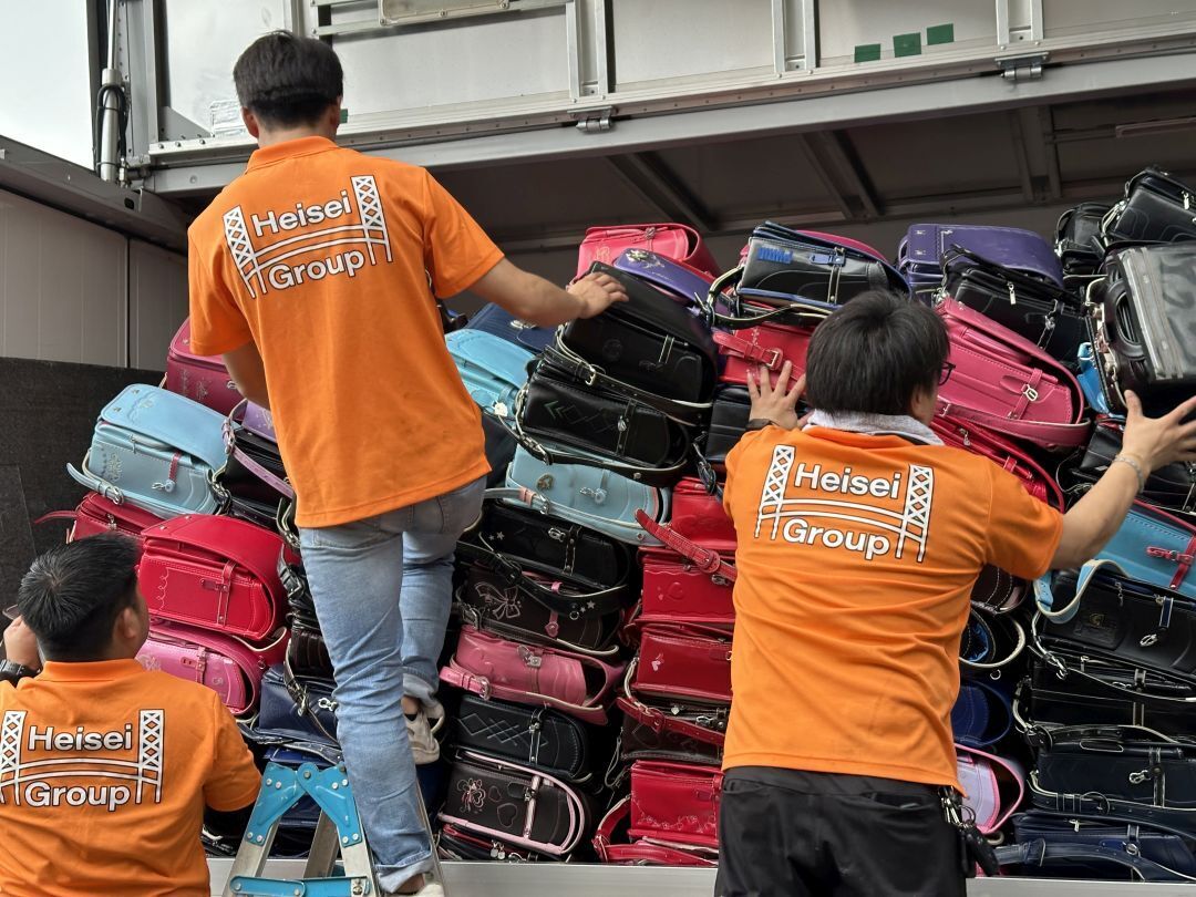 綺麗に掃除された後、文房具や古着などを詰め込まれたランドセルは、1つ1つ丁寧にトラックに積み込まれます。