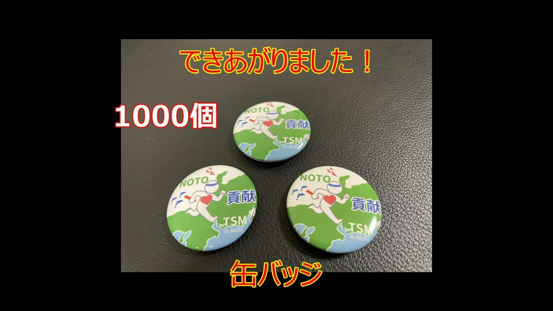 TSMのコーチたちと子どもたちの思いを込めた特製缶バッジ1000個が、ついに完成しました!これらの缶バッジは、能登半島地震復興支援イベントに参加してくれた子どもたちにプレゼントします。また、お手伝いくださった能登半島の方々や七尾市の方々やご支援いただいた一部の皆様にもお渡しします。