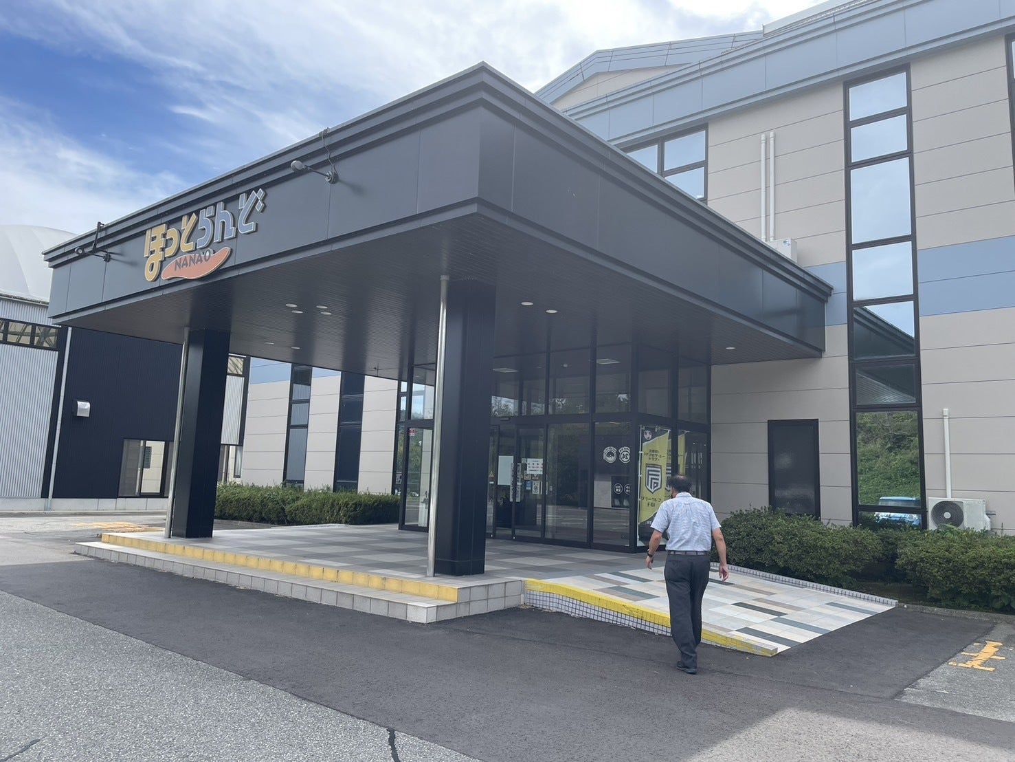 上記の写真は、2024年9月24日に撮影した石川県七尾市の「ほっとらんど」施設の様子です。この施設は、能登半島地震で被災された方々が無料でお風呂を利用できる憩いの場所となっています。