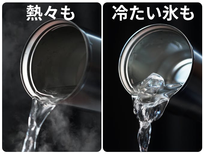 ⑤温冷両用。空気の層を高真空にした二重構造により、優れた断熱性を実現。