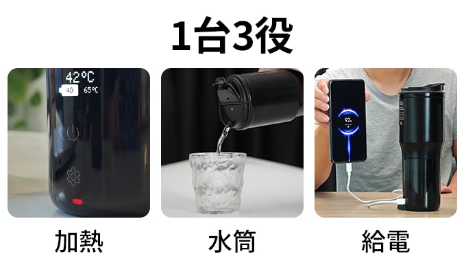 ①これ1台で電気ケトル、魔法瓶、さらにはモバイルバッテリーとしても使えます!