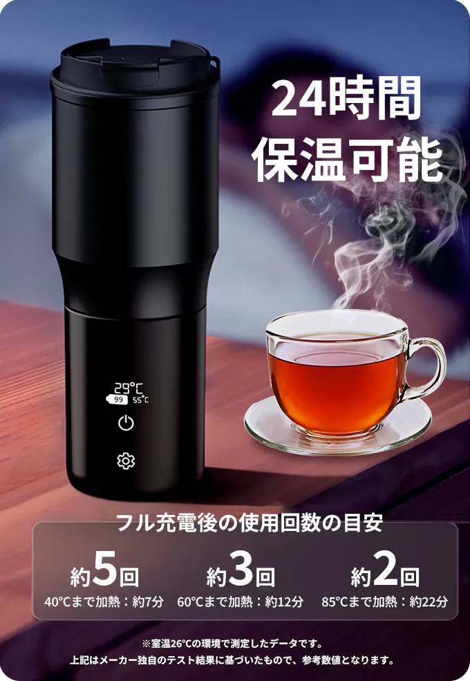 さらに、設定した温度に達すると自動的に保温モードに切り替わり、飲み頃の温度を長時間キープできるので、忙しい日常やキャンプ、アウトドアでも便利に使えます。