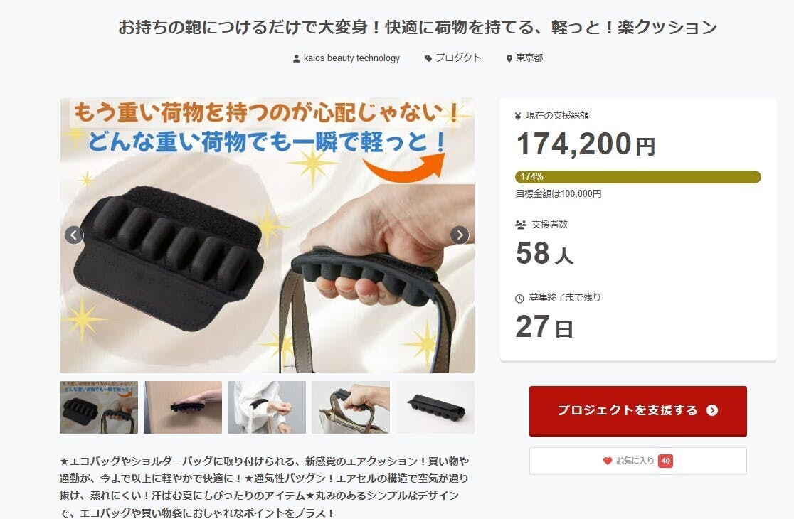 この度、プロジェクト「軽っと!楽クッション」が目標金額の170%を達成することができました!