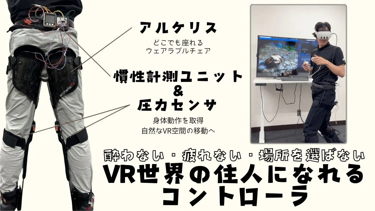 このアルケリスを使えば、VRプレイ時の「疲れ」が無くなるんじゃないか、そして座っている状態と立っている状態が近いことで、感じ方のズレも小さくなり「酔い」も解決できるのではないか、そんな予感がありました。
