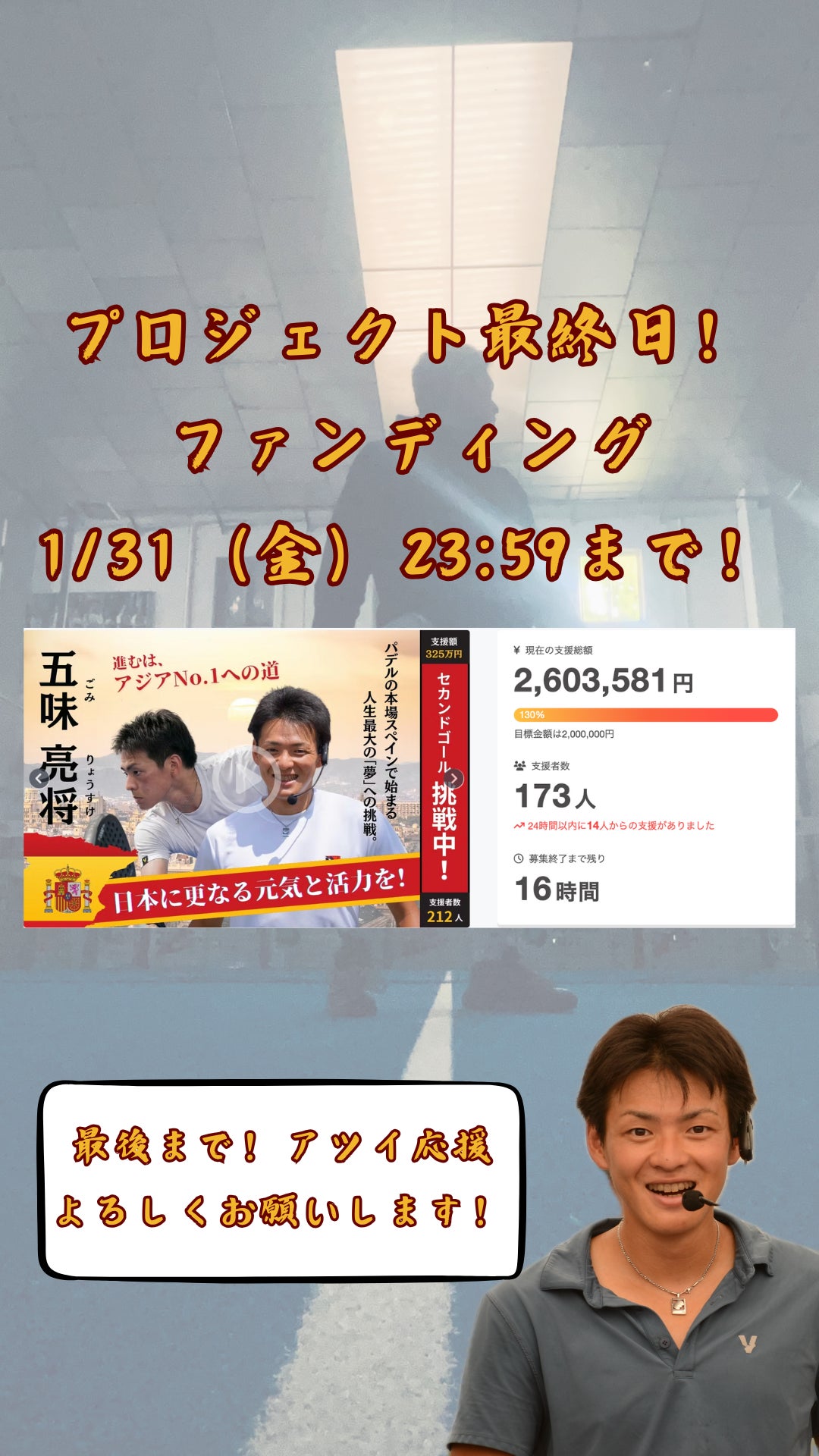 支援総額260万円を超えるエネルギーを頂戴しています!!