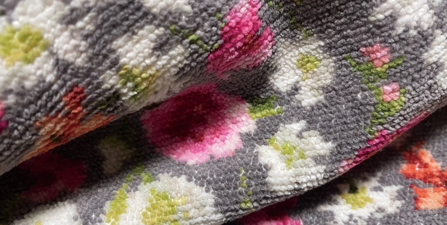 シェニール織といえば、黒いベースに花柄を