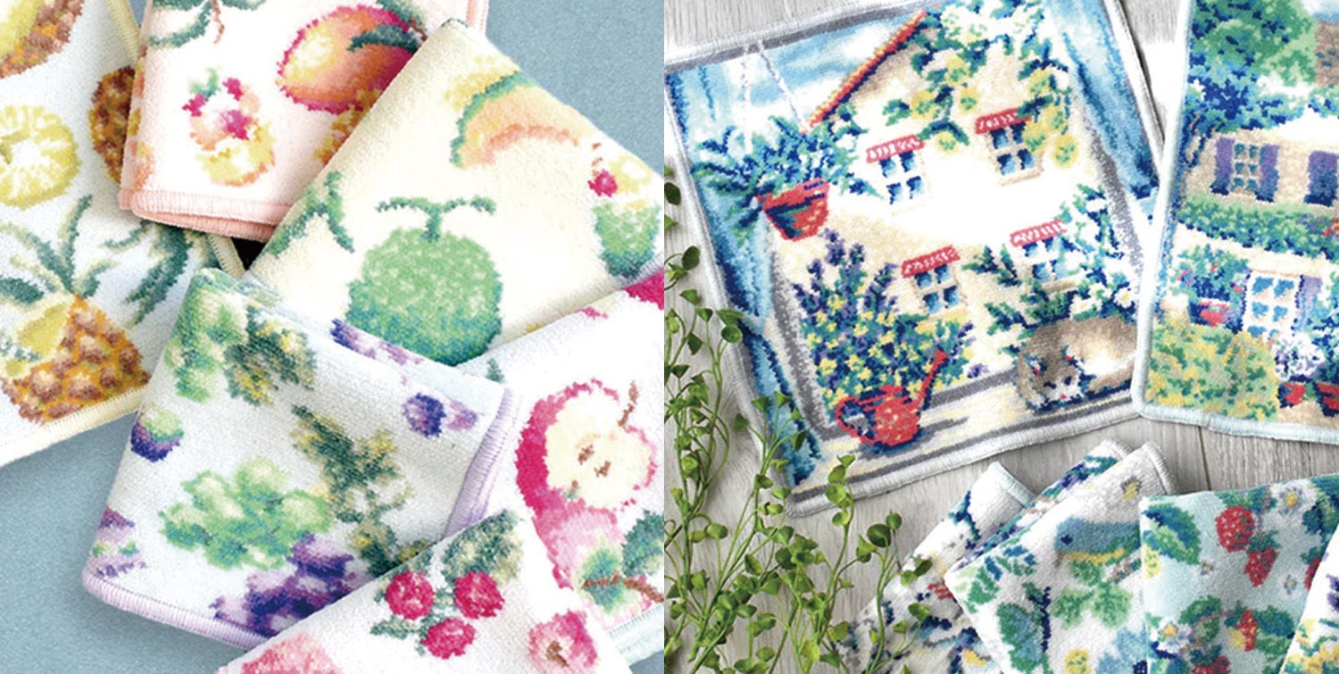 明るい花柄やフルーツの柄、犬や猫の柄など