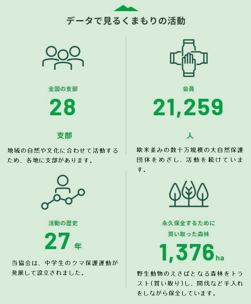 クマの目撃情報や人身事故があれば、現場へとんで地元の方と対策を話し合い、行政に捕殺に頼らない対策を提案するなど、地道な活動を続けています。「棲み分けによる防除」を早急に全国的な流れにするため、全国を飛び回って活動した結果、財政状況が非常に苦しくなっています。私たちは27年間、完全民間団体として会費と寄付だけで運営してきました。これからも森や野生動物を守りたいという純粋な想いを原動力に、活動していきます。