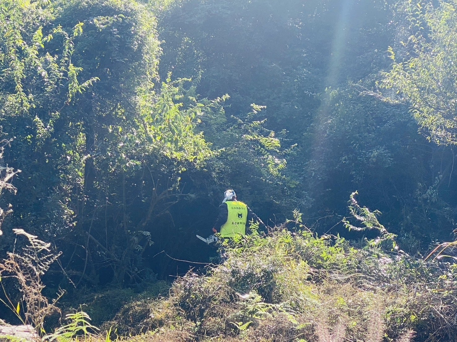 10月、「宍粟市でクマが出没して困っている人がいる」とご連絡を頂きました。宍粟市はクマの生息域で、熊森が古くから活動している地域です。早速フィールドチームは現場へ行き、地元の会員さんと一緒に地区長さんのお話を伺いました。「住民の皆さんにチラシなどを配り、下草刈りや不要樹木の伐採など注意喚起はしています」と地区長さん。クマ防除対策を知ってはいても、過疎高齢化が進む集落では、なかなか実施できないようです。お困りの方は、自宅畑のお向かいが空き家、お隣も空き家で、周辺一帯の手入れが行き届いておらず、野生動物の絶好の潜み場になり何とかしたいとのこと。また畑は山際にあるため、クマやシカなど野生動物がよく出てくる環境で、以前お隣のお宅に人がまだお住まいだったころは柿の木にクマが登って食べていたそうです。そんな風に、クマがすぐ隣で暮らしている集落ですが、「クマとは生活時間が違うので、人間側が気を付けて生活していれば問題ない」という意識の方が多いように感じます。ばったりクマと鉢合わせしないように、防除対策をしていきます。↑before↑after↑before↑afterとても見通しが良くなりました!