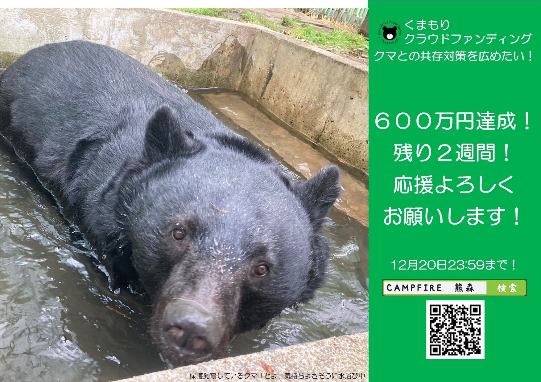 クマ問題に悩む地域の方はぜひご覧ください!10月20日、大盛況のうちに終わった緊急シンポジウム「自然保護団体と猟友会が考える日本のクマ問題」の動画が公開となりました!とても充実した内容で、クマ問題に取り組む現場の生々しい声を聞くことができます。クマ問題に悩む方、クマを何とか守っていきたい方、必見です。 第1部クマ問題の最前線から報告■プログラム ①「生息地の再生と被害対策の普及が不可欠」 室谷悠子((一財)日本熊森協会会長、弁護士) ② 「クマ出没対応の最前線で感じるクマ絶滅の恐れ」 藤沼弘文(岩手県花巻市猟友会 会長) ③ 「あわら市と協力したクマ被害防除の取り組み」 吉村嘉貴(福井県猟友会金津支部 支部長) ④ 「くくり罠による錯誤捕獲問題解決のために」 竹下毅 (( 合同)生物資源利活用研究所 代表/元長野県小諸市 野生鳥獣専門員) 第2部パネルディスカッション 「クマ被害を防ぎ、棲み分けて共存するために必要なこと」パネリスト:藤沼弘文/吉村嘉貴/竹下毅/森山まり子(一財)日本熊森協会名誉会長コーディネーター:室谷悠子拡散されればされるほど、目標金額に近付きます。ぜひぜひSNSなどで拡散よろしくお願いします!!・Facebook:こちら・プロジェクトURL:こちら・目標金額:1000万円・12月20日(金)終了・各種決済可能(クレジット、銀行振込、PayPay等)くまもりZOOM講演会11月29日(金)開催!締め切り迫る!自然保護の最前線に立つ熊森の活動を、弁護士で2児の母でもある室谷会長がお話します!クマとの軋轢に悩む北海道や秋田県の支部長、行政と協力して「防除による棲み分け」に取り組む本部フィールドチームからのご報告もあります。ZOOM講演会開催キャンペーンとして、11月28日までにクラファンへご支援いただいた方には、特別ZOOM背景をプレゼント☆ぜひご支援よろしくお願いします。日時:2024年11月29日(金)19:30~21:00参加費:無料定員:280名お申込み:こちらお申込み締切:11月28日(木)