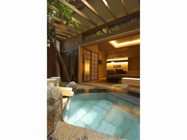 露天風呂が付いたお部屋は源泉かけ流しの温泉となります。