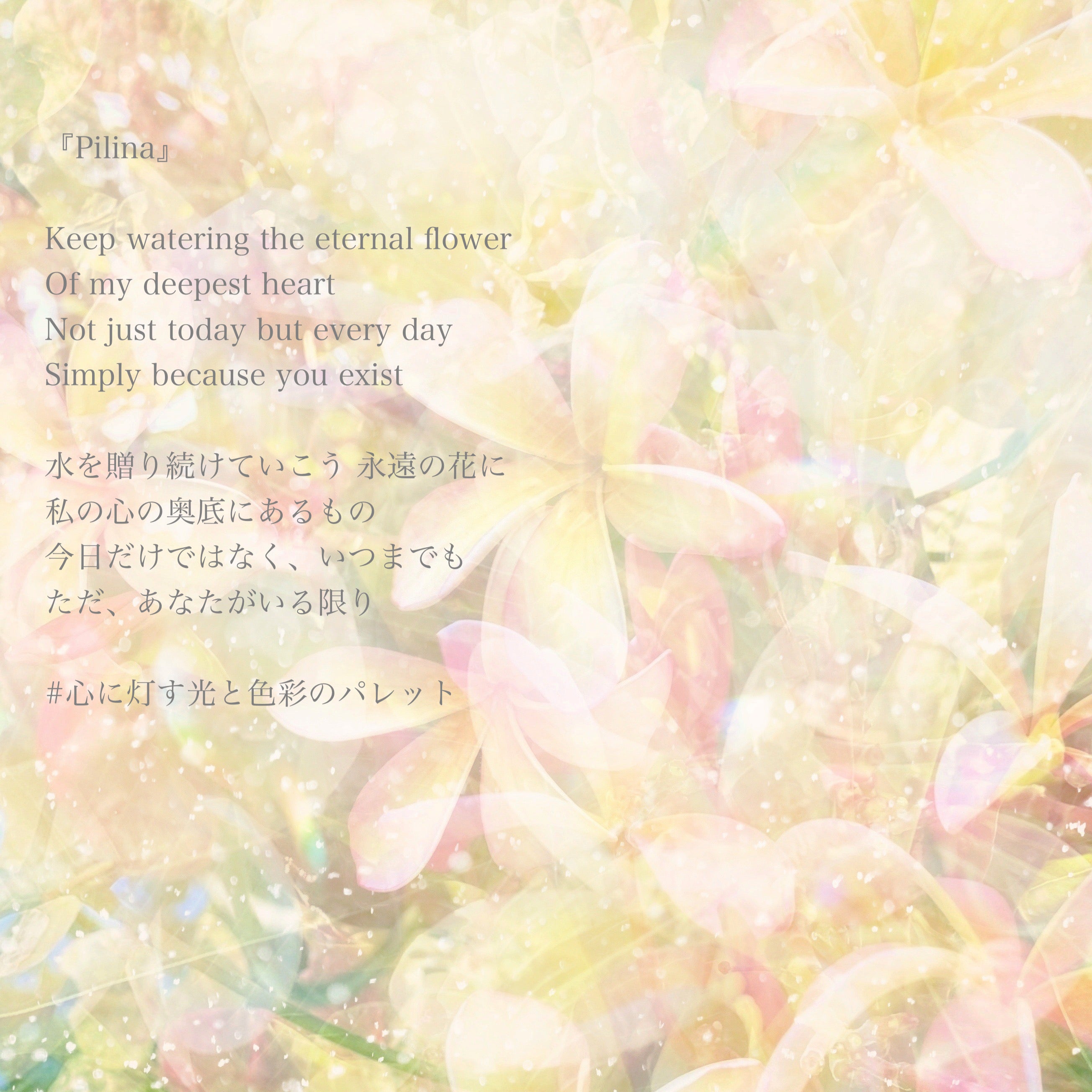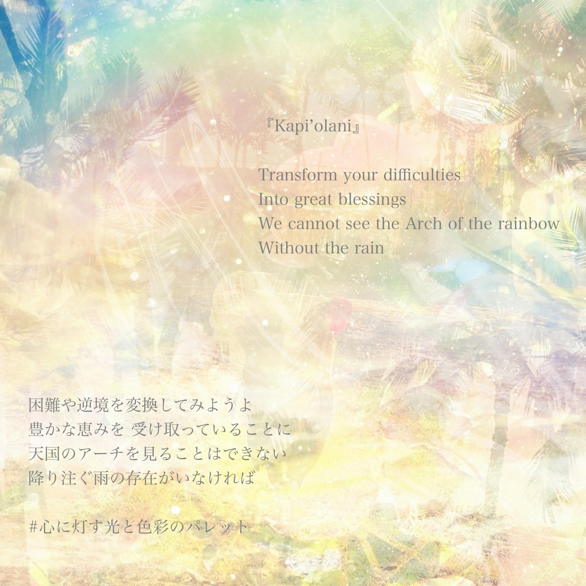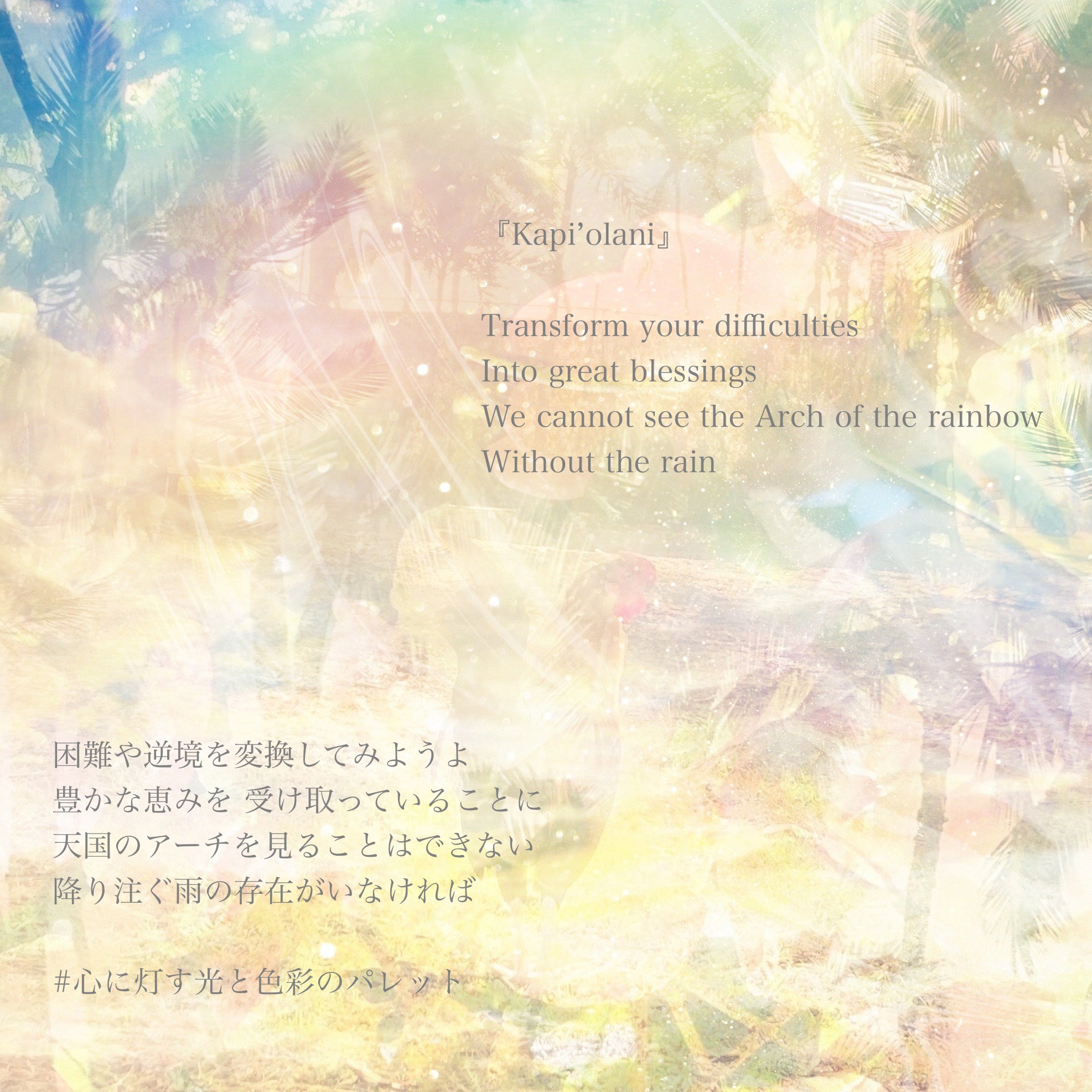 「私自身が培った人生体験が、縁する人にとって何か少しでも生きる力や支えになれたら。。」と、たくさんの光と色彩で満ちたアートを創ったり、思ったこと・感じたことをそのままメッセージとして紡いで発信しています。
