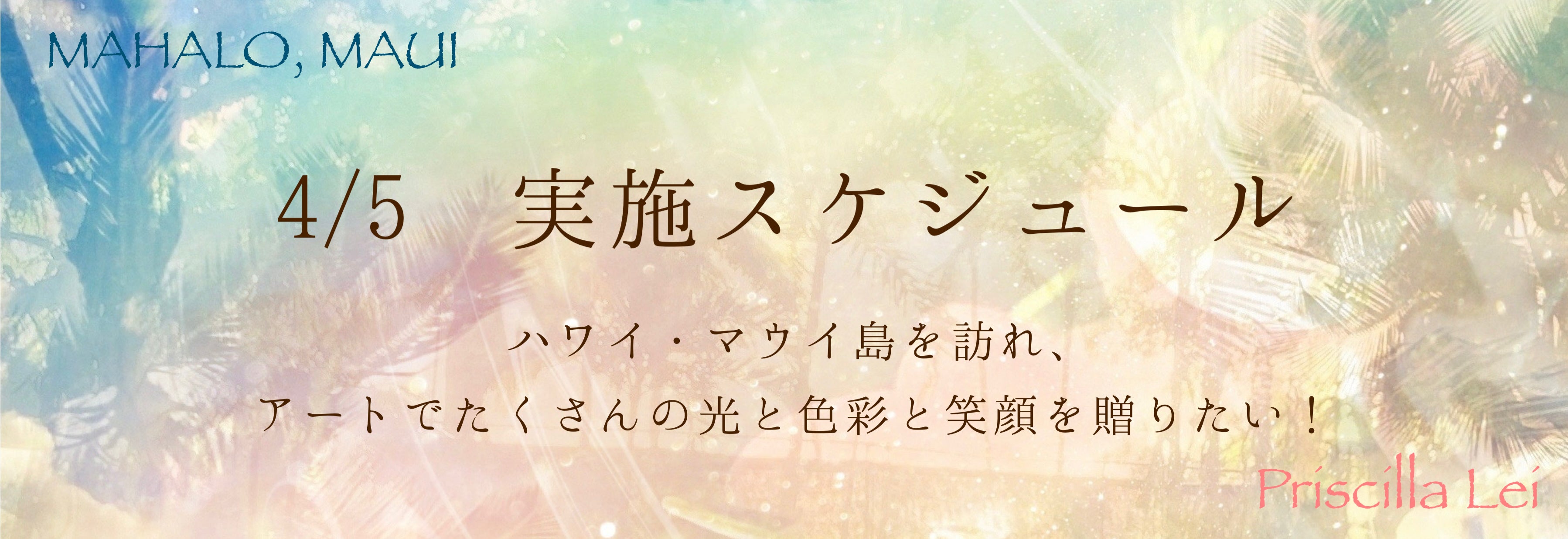 また、帰国後は「マウイ島はこんなに素敵なところなんだよ」と、マウイ島で目にした美しい光景を、MAHALOシリーズの新作アートやメッセージとして産み出していきたい。(完全新作を22点創作します!) マウイ島のことを知っている方にも、全然知らない方にも、発表して届けていきたい。