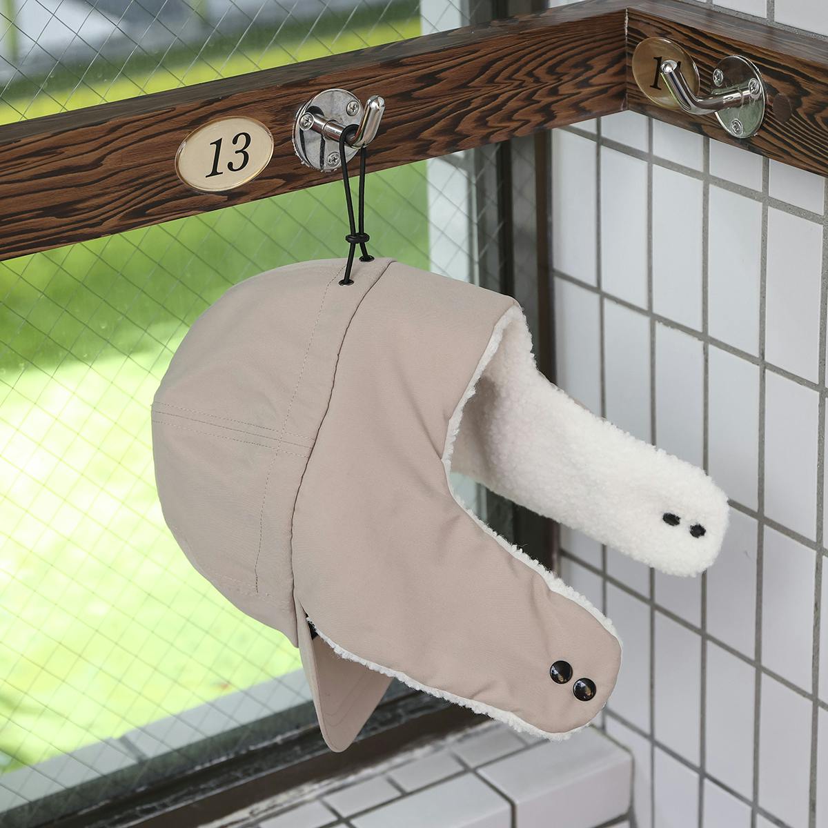 ボア部分を下ろすと犬の耳のようになり、耳をしっかり守ります。