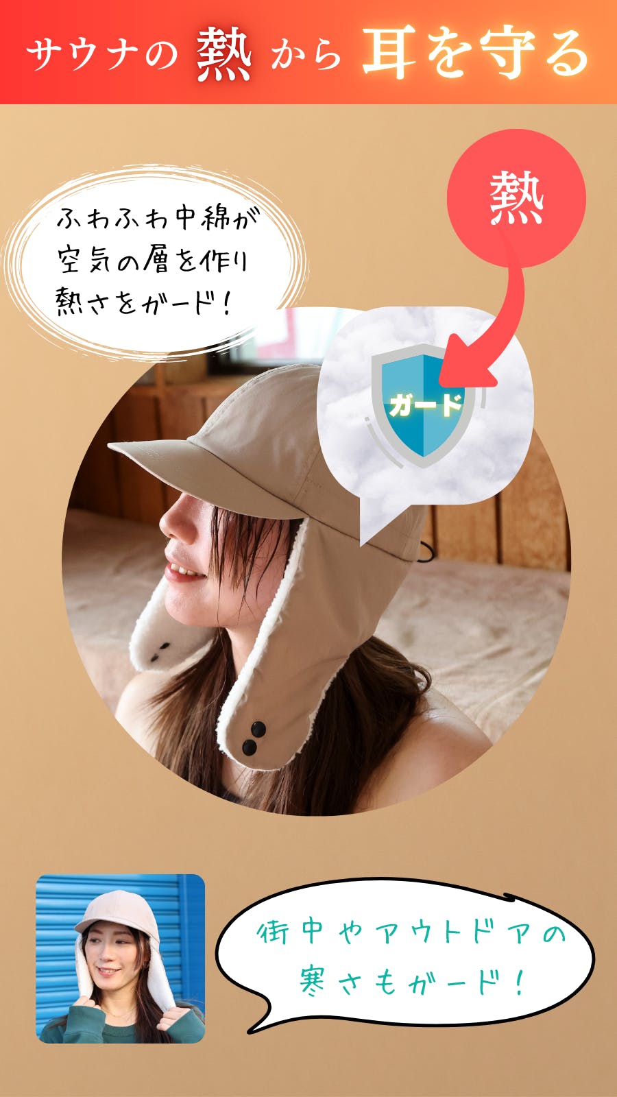 防寒としてはもちろん、サウナやアウフグースの熱からも耳をしっかり守ることができます。