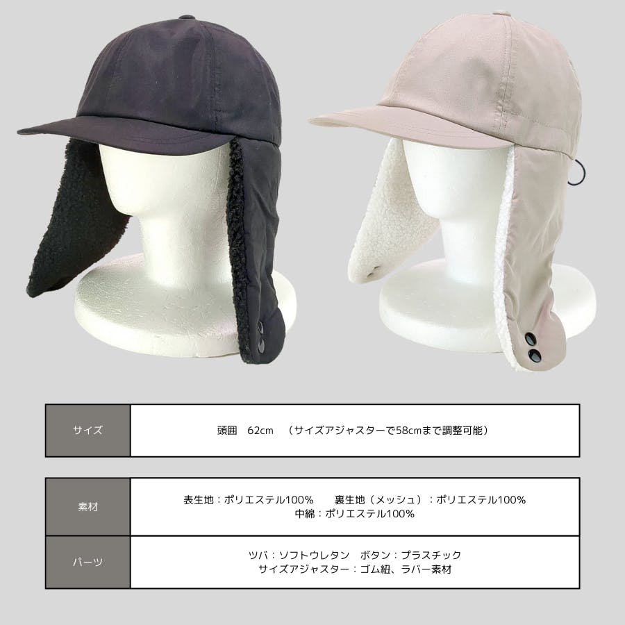 耳で隠れた部分には留め具付きのゴムがあり、簡単にサイズ調節が可能です。