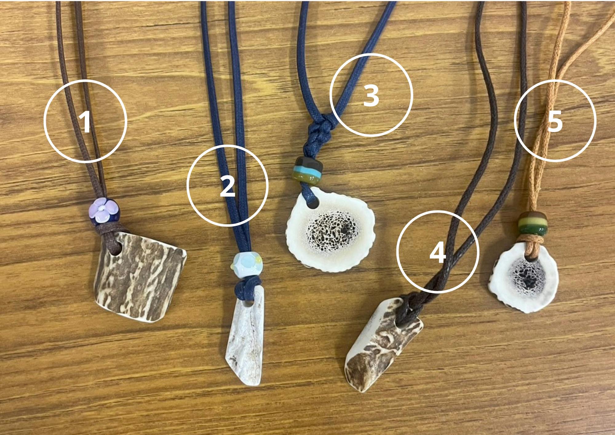 小菅村で私たちが製作した鹿の角のアクセサリーをお送りいたします!鹿の角のパーツがついたネックレスです!唯一無二です!