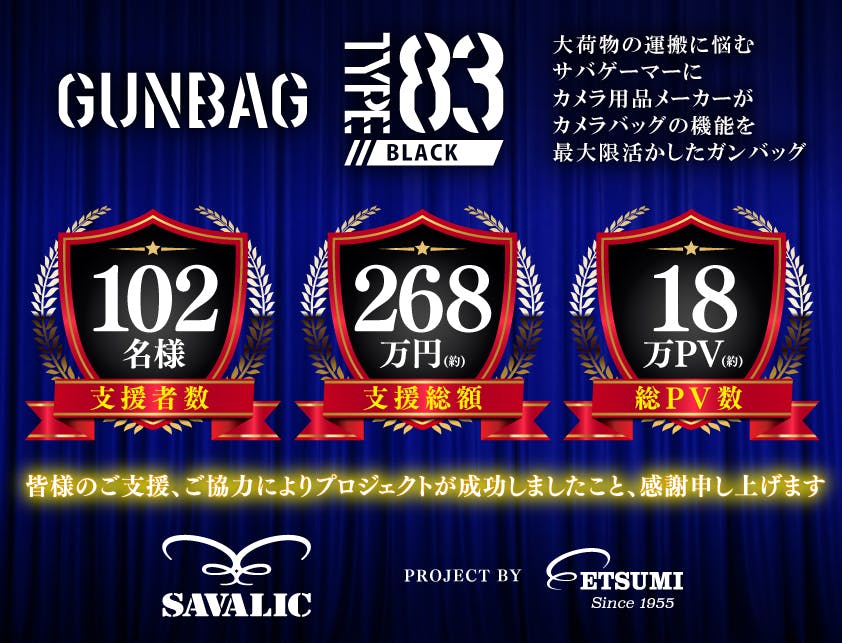 2025/10/01 11:19昨日をもちまして、クラウドファンディングの募集を無事に締め切らせていただきました。この一か月余り、多くのご支援を賜り、心より御礼申し上げます。いただいたご支援金は、すべて開発部材費として大切に活用させていただきます。大荷物を抱えての往復の煩わしさを少しでも軽減したい──その思いから開発した「ガンバッグType83」。バッグと共にサバゲーを楽しみ、素敵な思い出も一緒に詰め込んでご帰宅いただけることが、私の何よりの願いです。改めまして厚く御礼申し上げます。商品は明日より順次発送を開始いたしますので、どうぞ楽しみにお待ちください。今後とも変わらぬご愛顧を賜りますよう、よろしくお願い申し上げます。 もっと見る