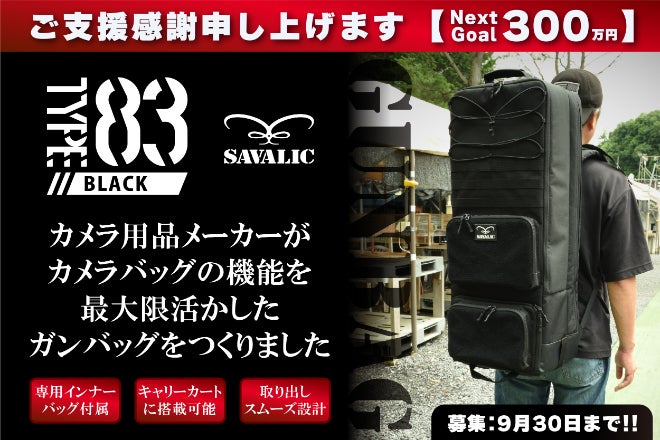 2025/10/01 11:19昨日をもちまして、クラウドファンディングの募集を無事に締め切らせていただきました。この一か月余り、多くのご支援を賜り、心より御礼申し上げます。いただいたご支援金は、すべて開発部材費として大切に活用させていただきます。大荷物を抱えての往復の煩わしさを少しでも軽減したい──その思いから開発した「ガンバッグType83」。バッグと共にサバゲーを楽しみ、素敵な思い出も一緒に詰め込んでご帰宅いただけることが、私の何よりの願いです。改めまして厚く御礼申し上げます。商品は明日より順次発送を開始いたしますので、どうぞ楽しみにお待ちください。今後とも変わらぬご愛顧を賜りますよう、よろしくお願い申し上げます。 もっと見る