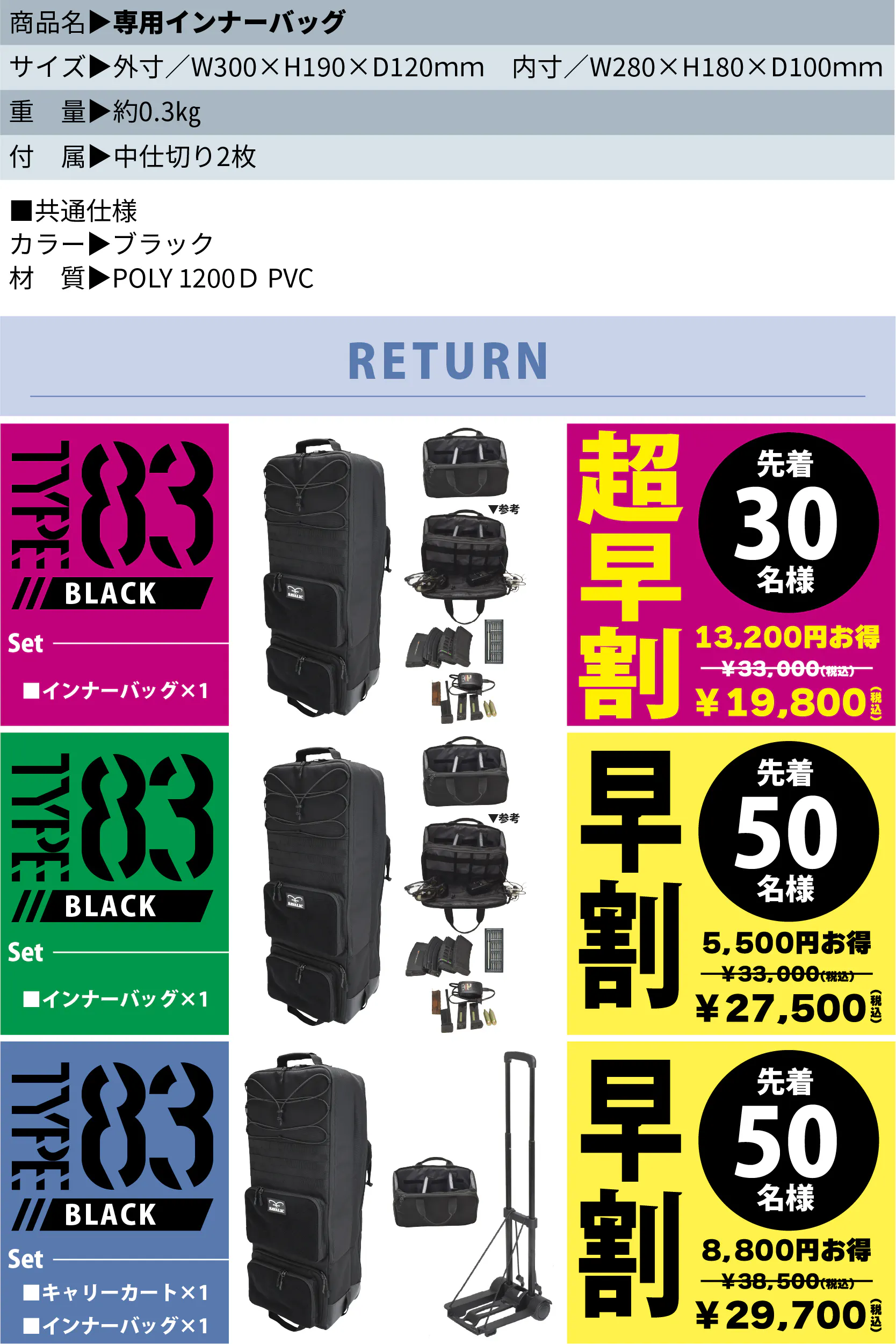 2025/09/30 12:49いよいよサバゲーシーズン到来ですね!ガンバッグType83を早期にお届けできるよう、本日、自社倉庫にて出荷準備を進めております。商品は今週末から来週初めにかけて順次お届けできる見込みでございます。なお、予約購入の受付は本日までとなっております。ぜひこの機会をお見逃しなきようお願い申し上げます。 もっと見る