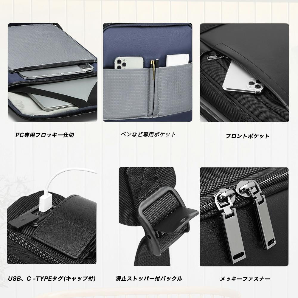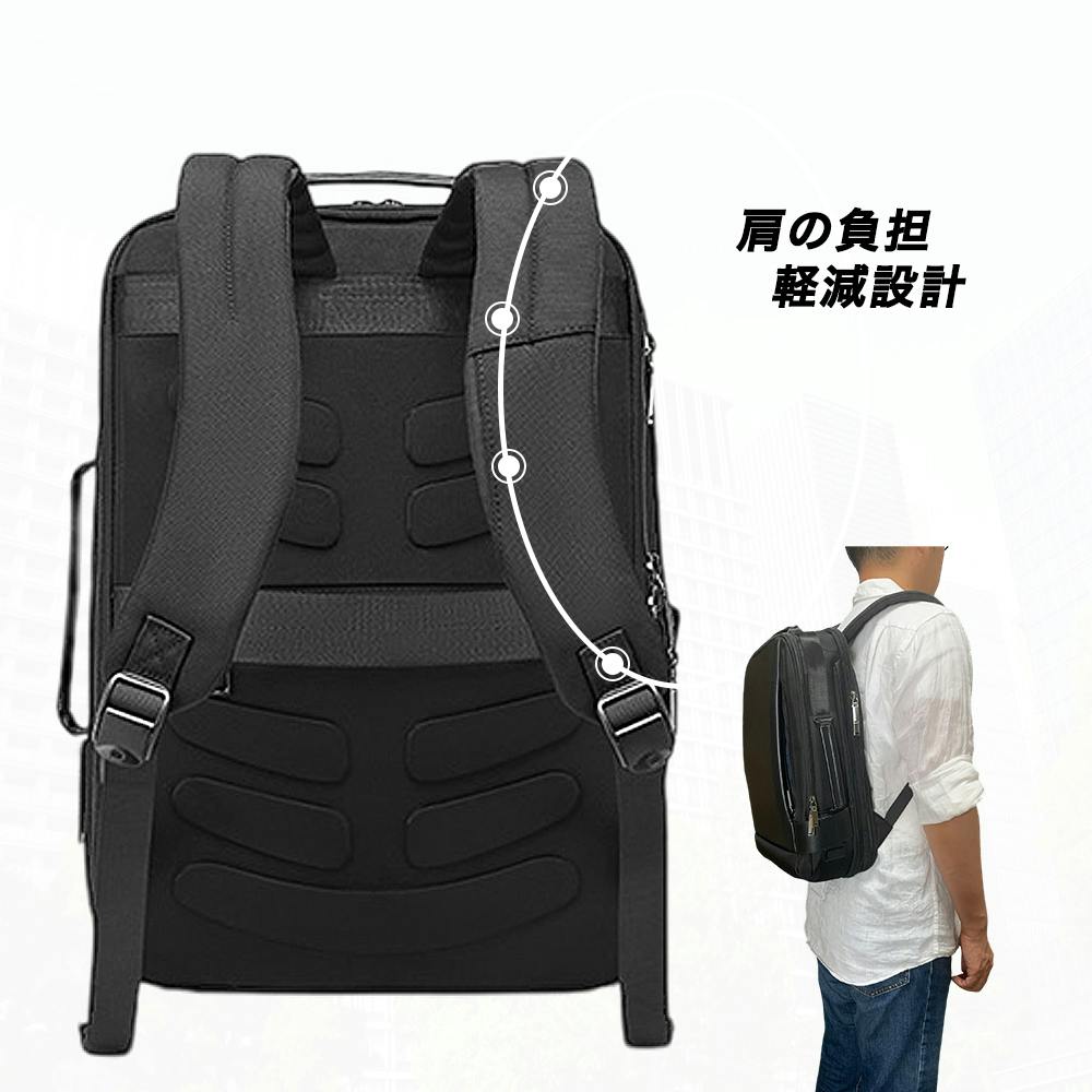 リュック、ハンドバッグ、クロスバッグとして使用でき、状況に応じて簡単に持ち方を変更できます。リュックとして使用すれば、両手が自由になり、通勤時の移動も快適です。さらに、ハンドバッグやクロスバッグとしても、スタイリッシュに持ち歩けます。充実した収納スペースや専用のラップトップポケットなど、機能性にも優れたこのバッグは、ビジネスマンにとって必須のアイテムです。