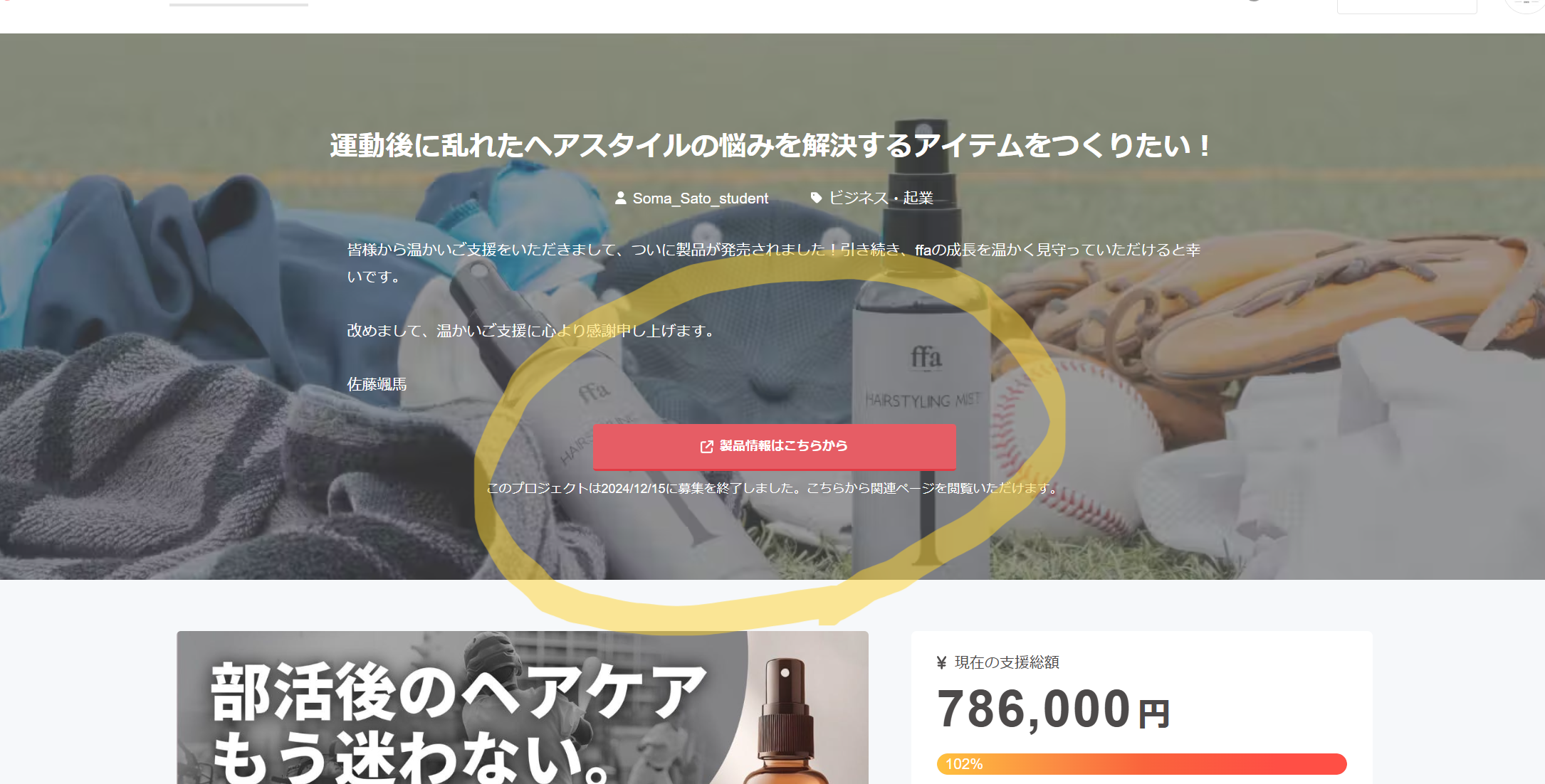ffa代表の佐藤颯馬です!クラウドファンディングのトップページを更新しました!ページ内のトップ画像にある「製品情報はこちら」のリンクから遷移していただき、「ご購入はこちら→」ボタンを押していただくと、オンラインショップでご購入いただけるようになっております。クラウドファンディングページの流れは以下の通りです:「製品情報はこちら」 → リンク先ページの「ご購入はこちら→(画像下部)」 → オンラインショップで購入また、下記の「オンラインショップはこちら」のリンクから、直接ご購入いただくことも可能です。▶ オンラインショップはこちら製品情報ページやオンラインショップは、何度も試行錯誤を繰り返して作り上げました。ぜひ一度ご覧いただけると嬉しいです!また、公式Instagramでも活動報告などを随時更新していますので、ぜひチェックしていただけると幸いです!▷ 公式インスタグラムはこちら今後とも、応援のほどよろしくお願いいたします。