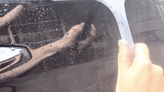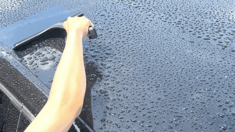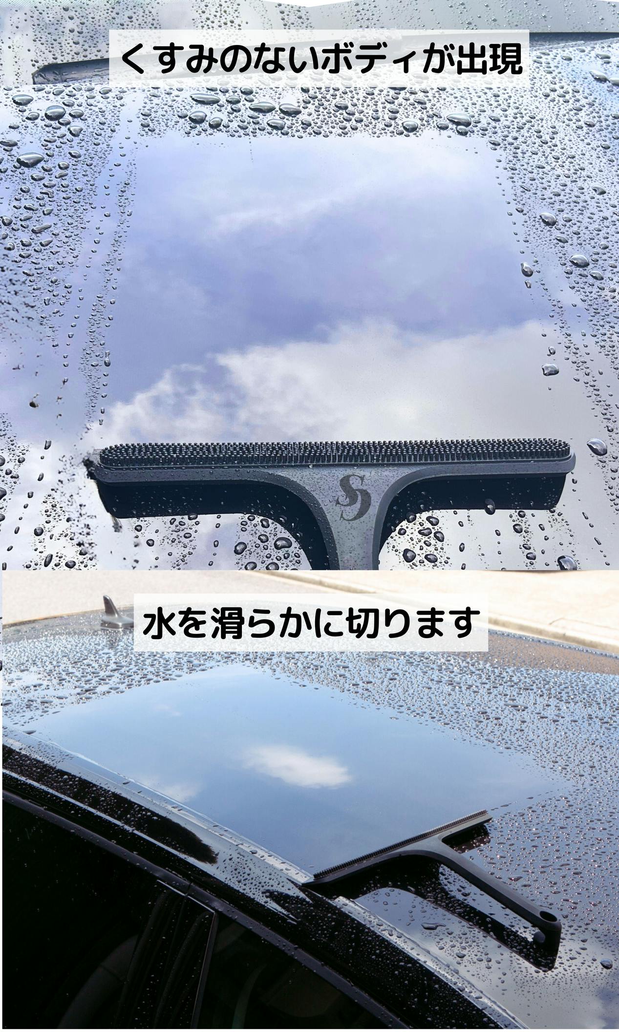 また、裏技として、車で外出して雨に降られて帰宅したら、すぐにカースイーパー(本製品)を取り出して、2〜3分でパパッと水を切っておきます。