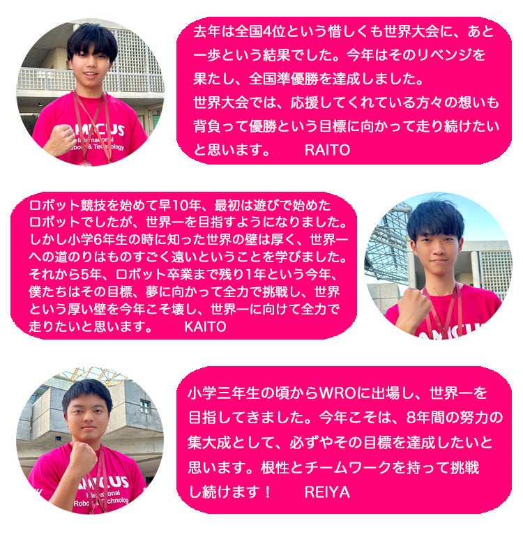 小学生の頃から一緒に切磋琢磨し、WROの競技で長年実績を積んできた6人が、ジュニア部門、シニア部門の日本代表チームとして目標としてきた世界の表彰台へ挑みます!