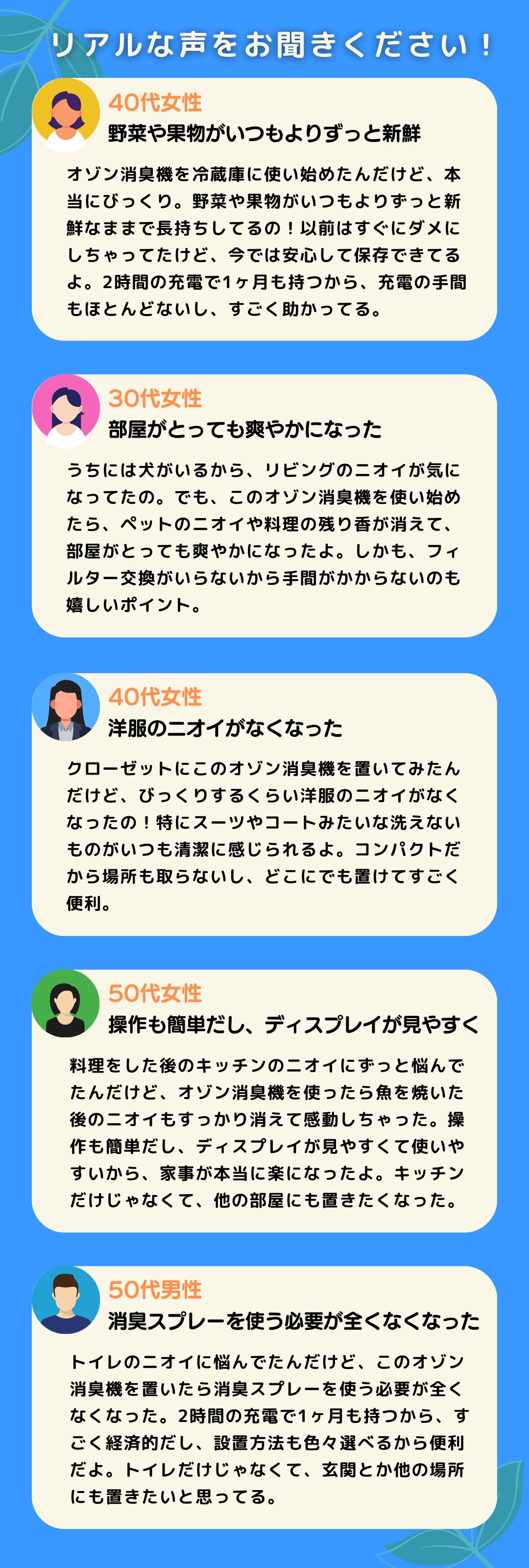 この商品は、より良い生活環境を提供し、日常の煩わしさを少しでも軽減するために生まれました。お客様がいつでもどこでも清潔で快適な空間を楽しめるように、私たちはこのオゾン脱臭機の開発に全力を注ぎました。