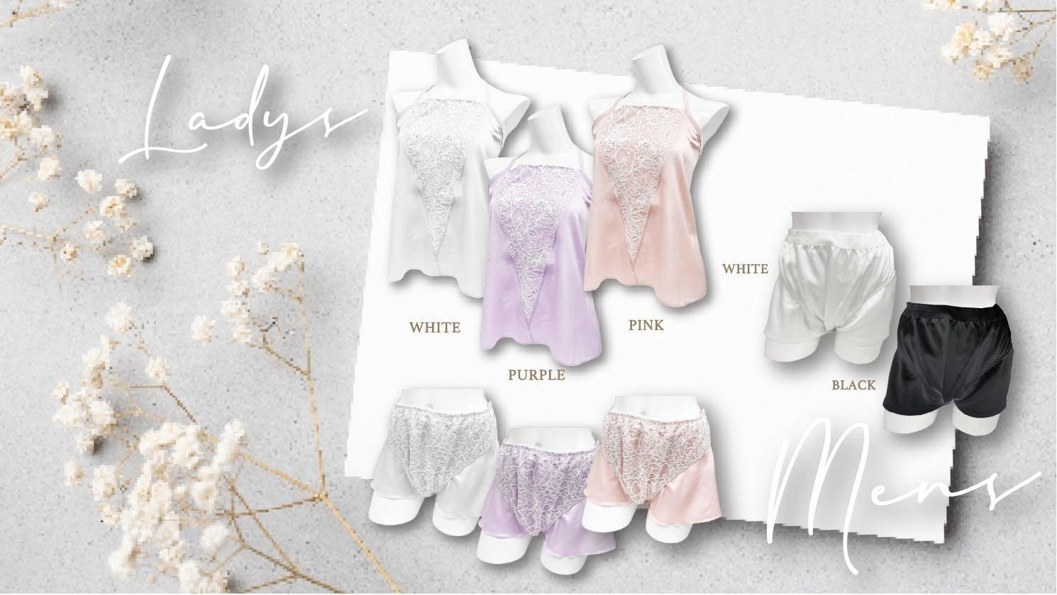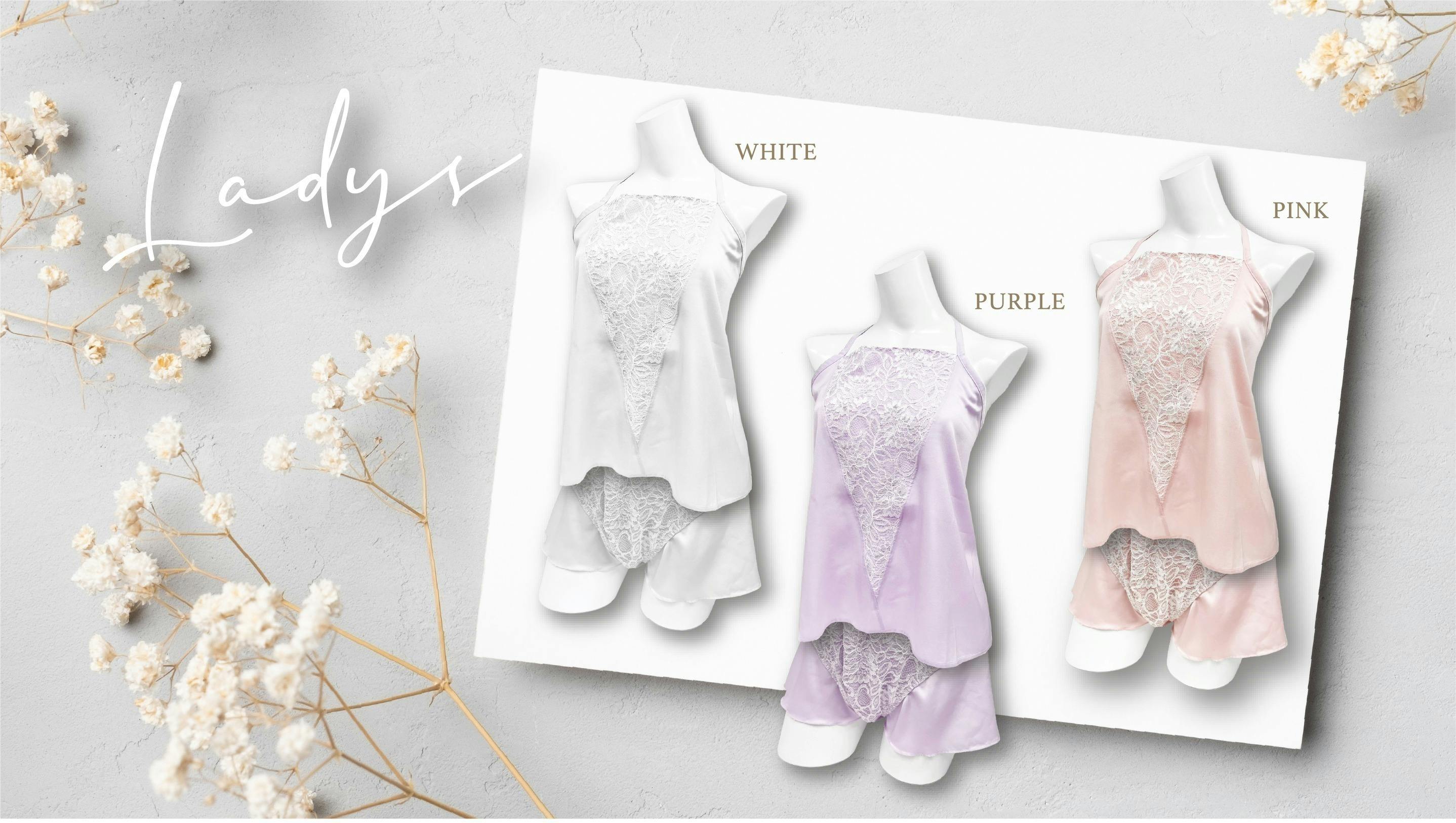 主素材は下着の代表的な素材サテン生地を使用。エレガントさを演出したレースをポイントに使用した。