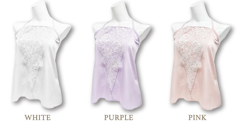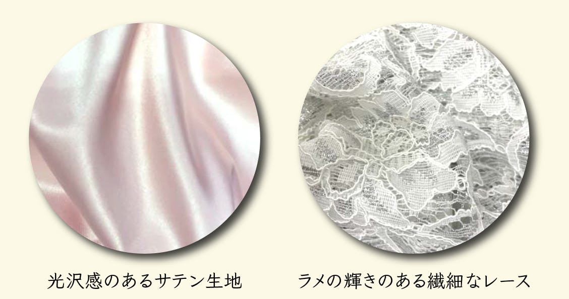 主素材は下着の代表的な素材サテン生地を使用。エレガントさを演出したレースをポイントに使用した。