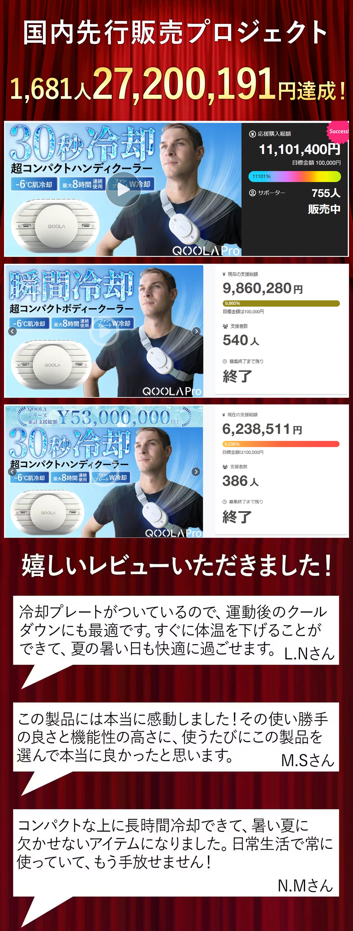 QOOLA Proは最新技術ICS+を搭載、たった30秒で超ひんやり冷却できます!