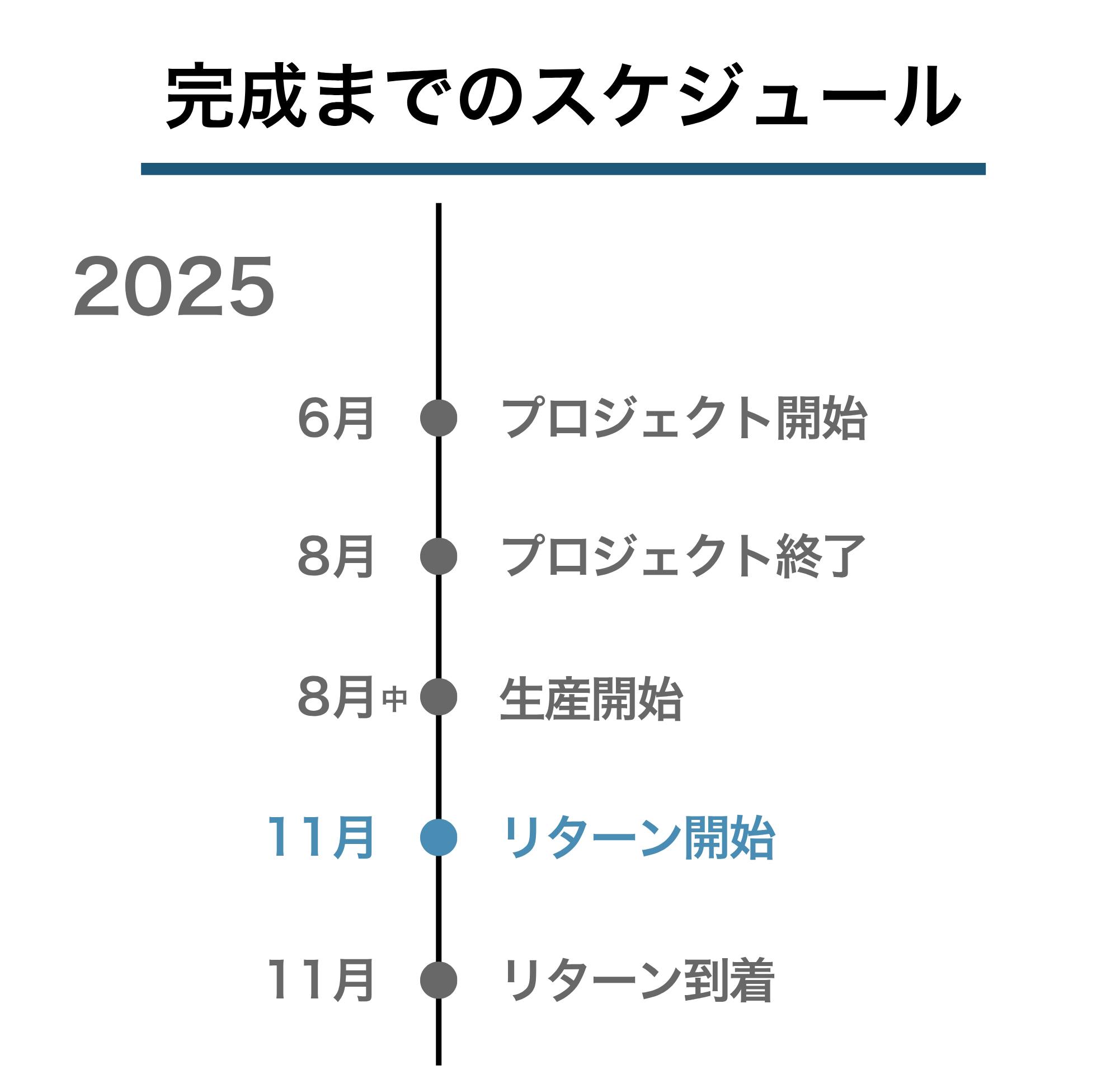 ※本文中に記載させていただいたスケジュールは、あくまでプロジェクト公開時点の予定です。クラウドファンディングを経て輸入を行う性質上、配送遅延のおそれがございます。
